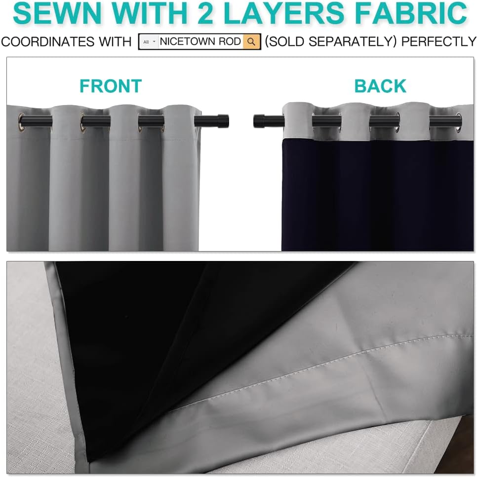 NICETOWN Full Shade Curtain Panels, Pair of Energy Smart & Noise Blocking Out Blackout Drapes for Dining Room Window, Thermal Insulated Guest Room Lined Window Dressing(Silver Grey, 52 x 84 inch)