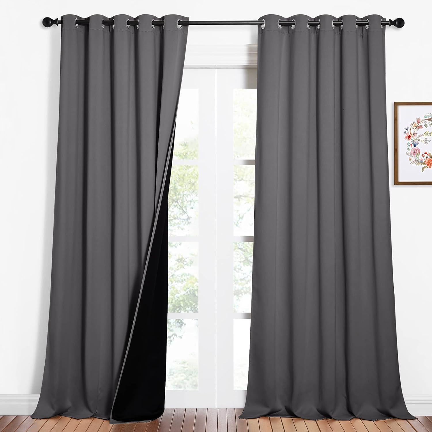 NICETOWN Total Shade Curtains and Draperies, Heavy-Duty Full Light Shading Drapes with Black Liner Backing for Villa/Hall/Dorm Window(Gray, Package of 2 Panels, 62 inches Wide x 95 inches Long