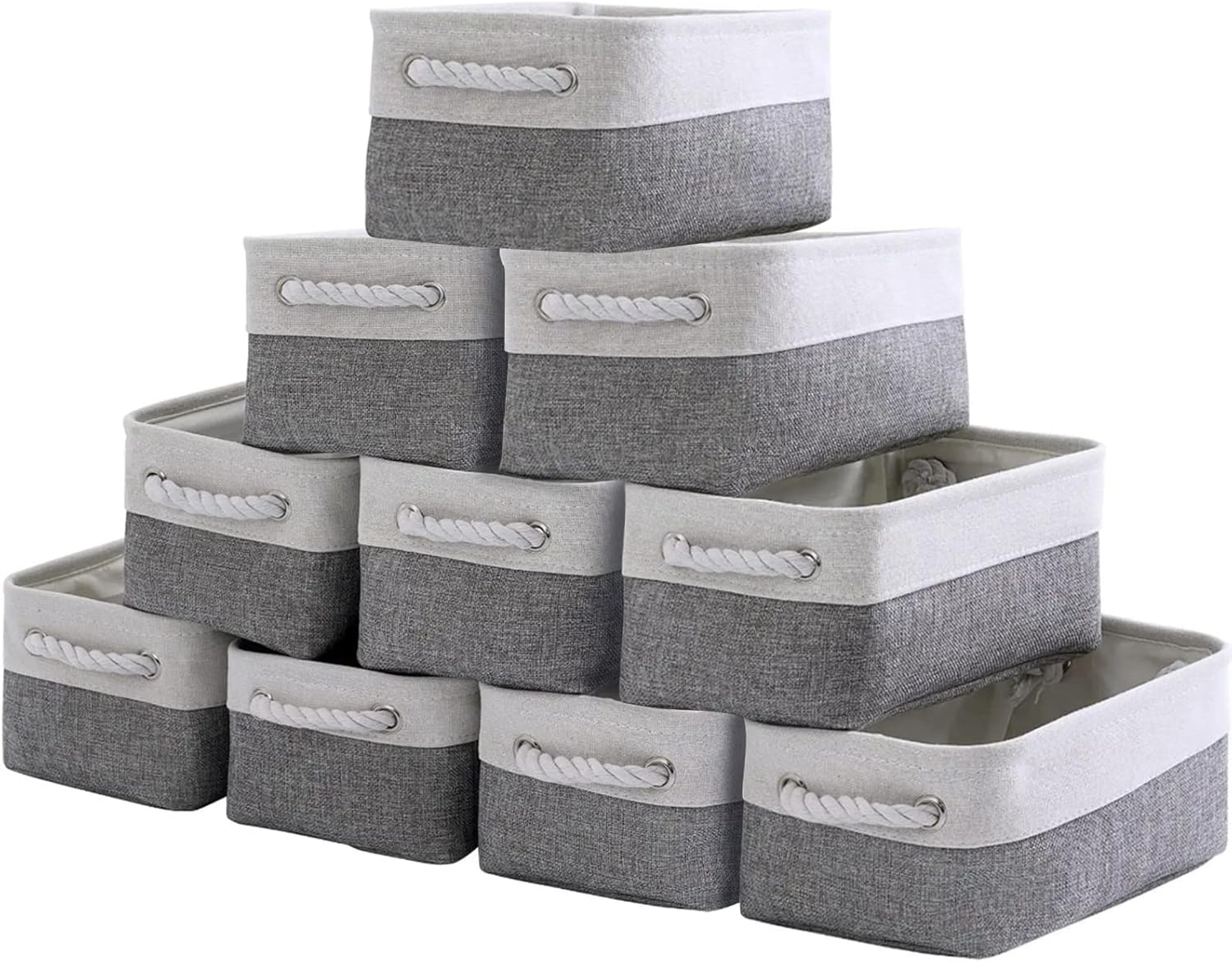 Storage Baskets 12x8x5 inch 10 Pack Fabric Baskets Foldable Storage Bins Decorative Baskets cloth storage baskets Storage Foldable Storage Bin with Rope