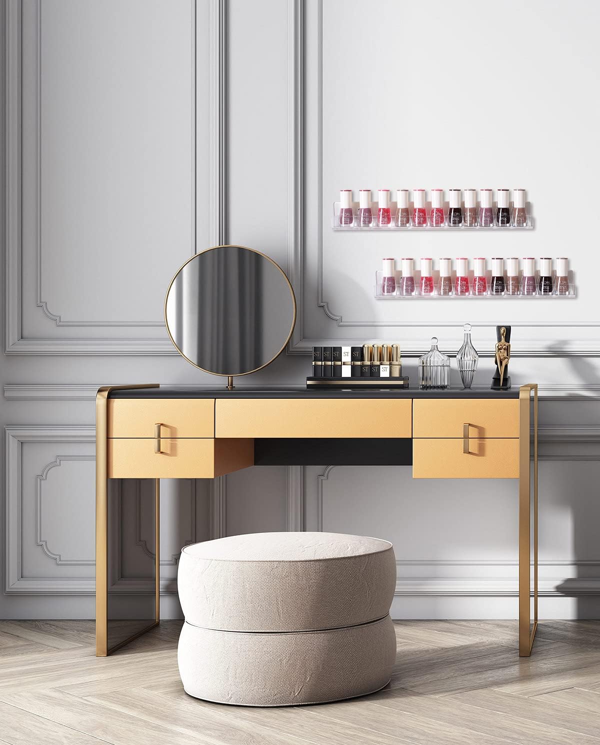 - MULTI-FUNCTION:The floating shelves are perfect for nail polish, essential oil,,lipstick,dressing-brush,liquid foundation also can be used as wall bookshelf in kids room.No matter display your collection at home, nail salon, nail business, retail or be an gift for girls, kids,wives and mothers ,all are great choice!