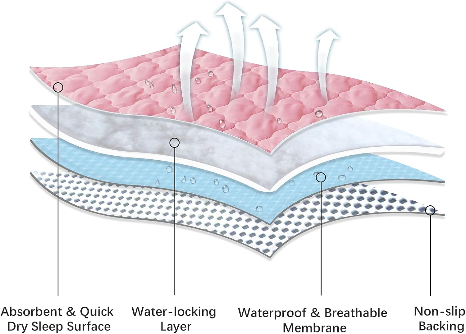 - Easy Care & Washable: Crib Mattress protector with 4 layers construction including cotton fabric surface, breathable absorbent layer, No plastic sound TPU waterproof layer,and anti-slip layer