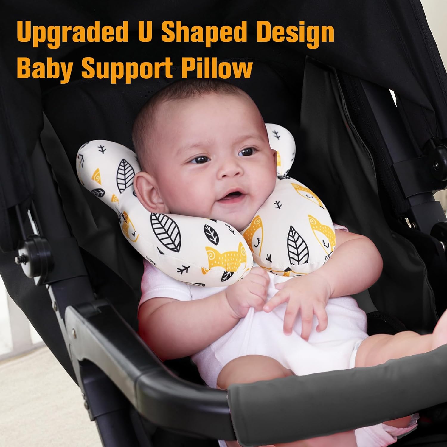KAKIBLIN Baby Neck Pillow, Upgraded Baby Support Pillow for Head and Neck, Babies Head Pillow for Car Seat,Pushchair,Travel(Yellow Fox)
