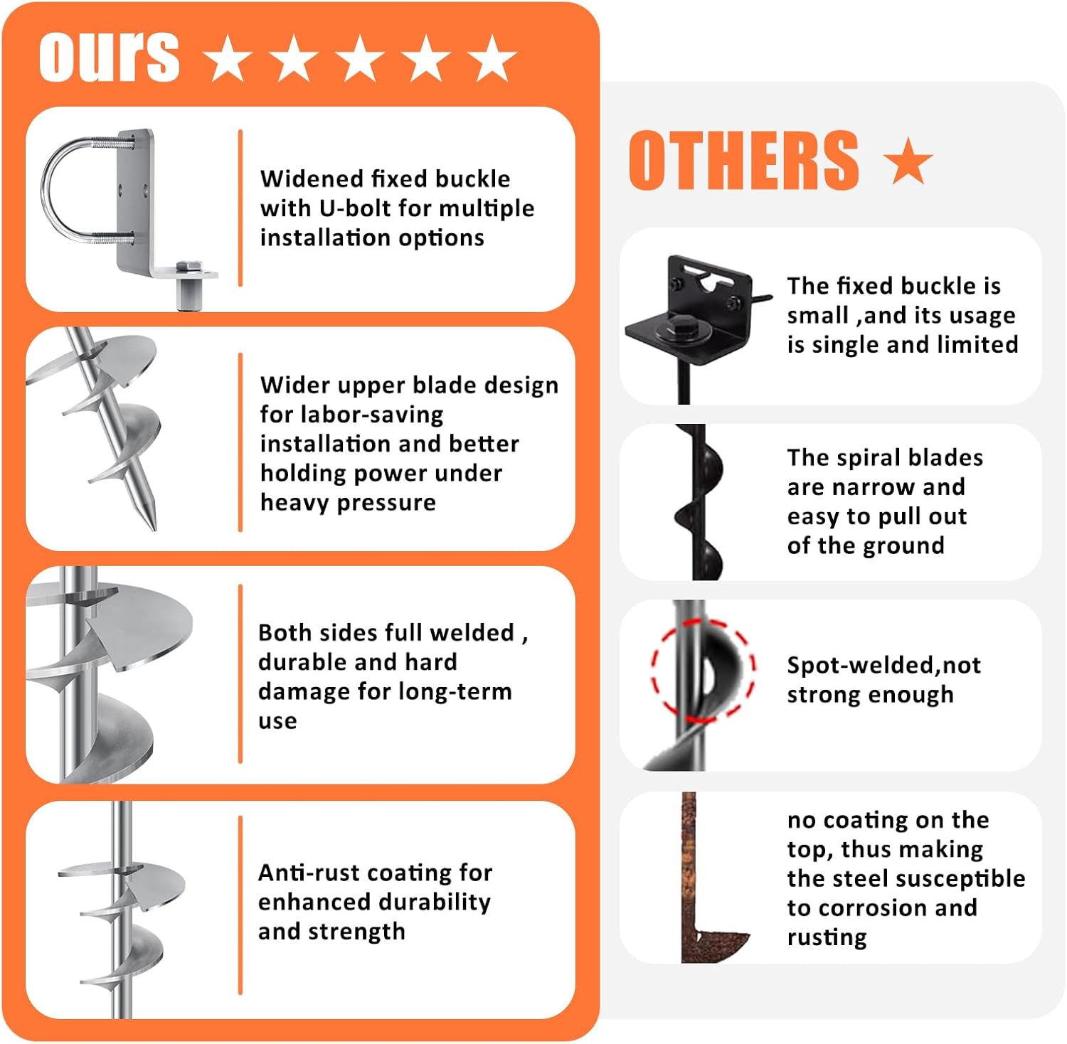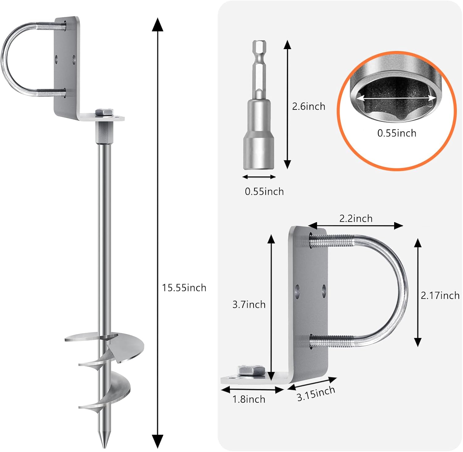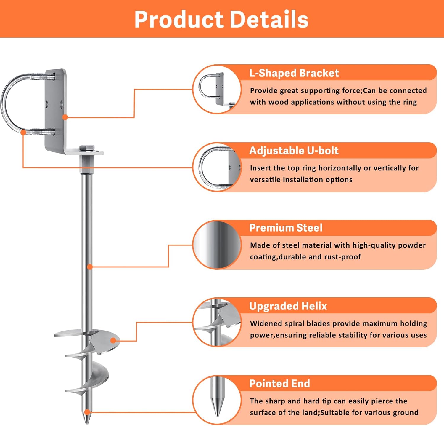 - Complete set for your convenience: These tent stakes include all the necessary components for a hassle-free installation, making it an ideal choice for both DIY enthusiasts and professionals.You will receive 4×ground anchors,4× brackets,4×top rings,4×hex head screw bolts with washers,8×screws with washers,a 14mm adapter and an open-end wrench.