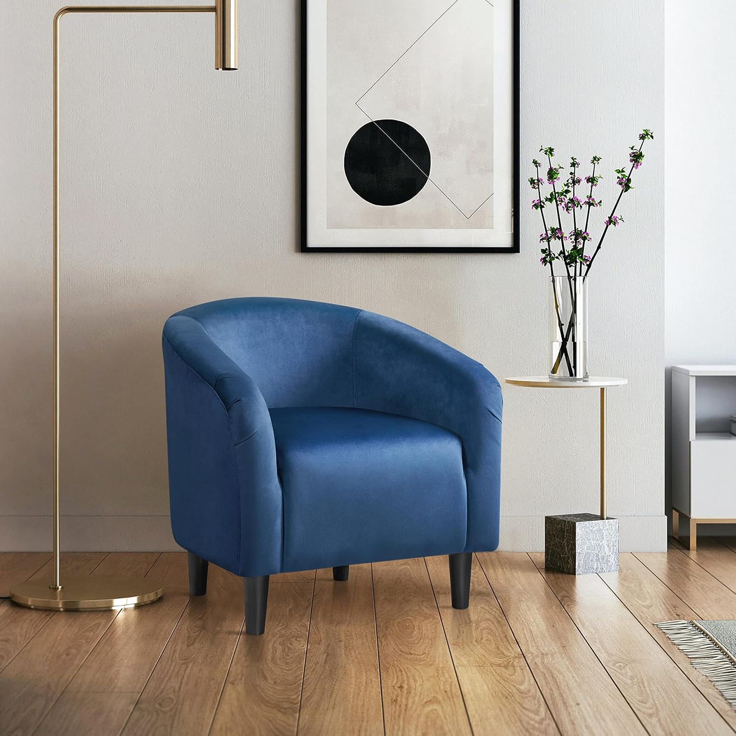 Yaheetech Club Chair, Velvet Accent Chair Upholstered Barrel Chair Sitting Chair with Armrest and Low Back for Living Room Bedroom, Pagoda Blue