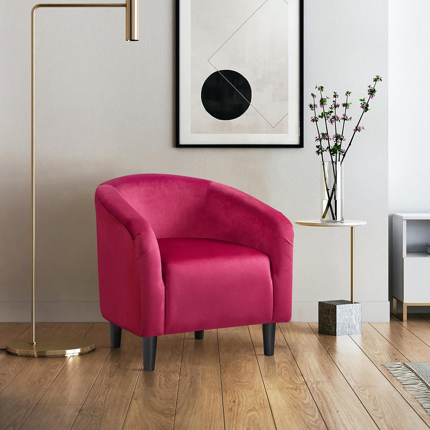 - 5-minute Setup: The assembly for this barrel chair is as easy as cake. Just fix the four legs to the bottom and your new armchair is ready to serve