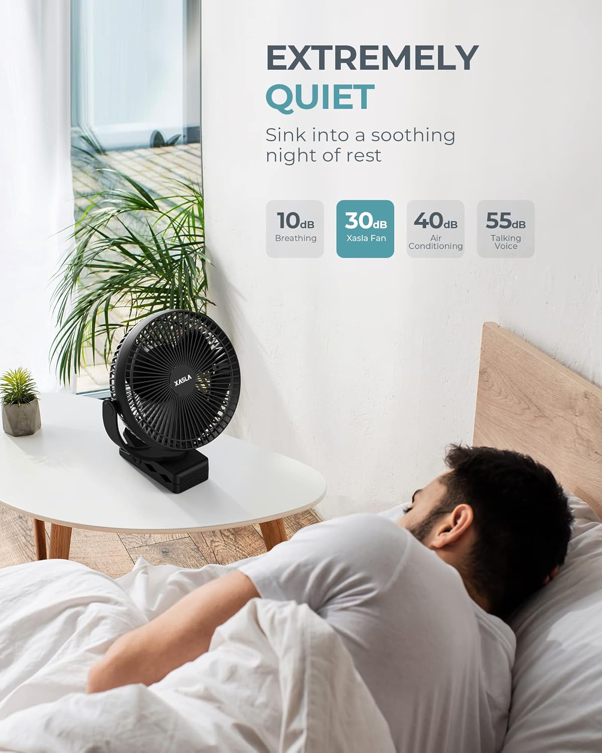 xasla 10000mAh Portable Clip on Fan, 8 inch Rechargeable Battery Operated, 24 Hours Work Time, Quiet USB 4 Speeds Personal, Ideal for Outdoor Camping Golf Cart Home Office Black