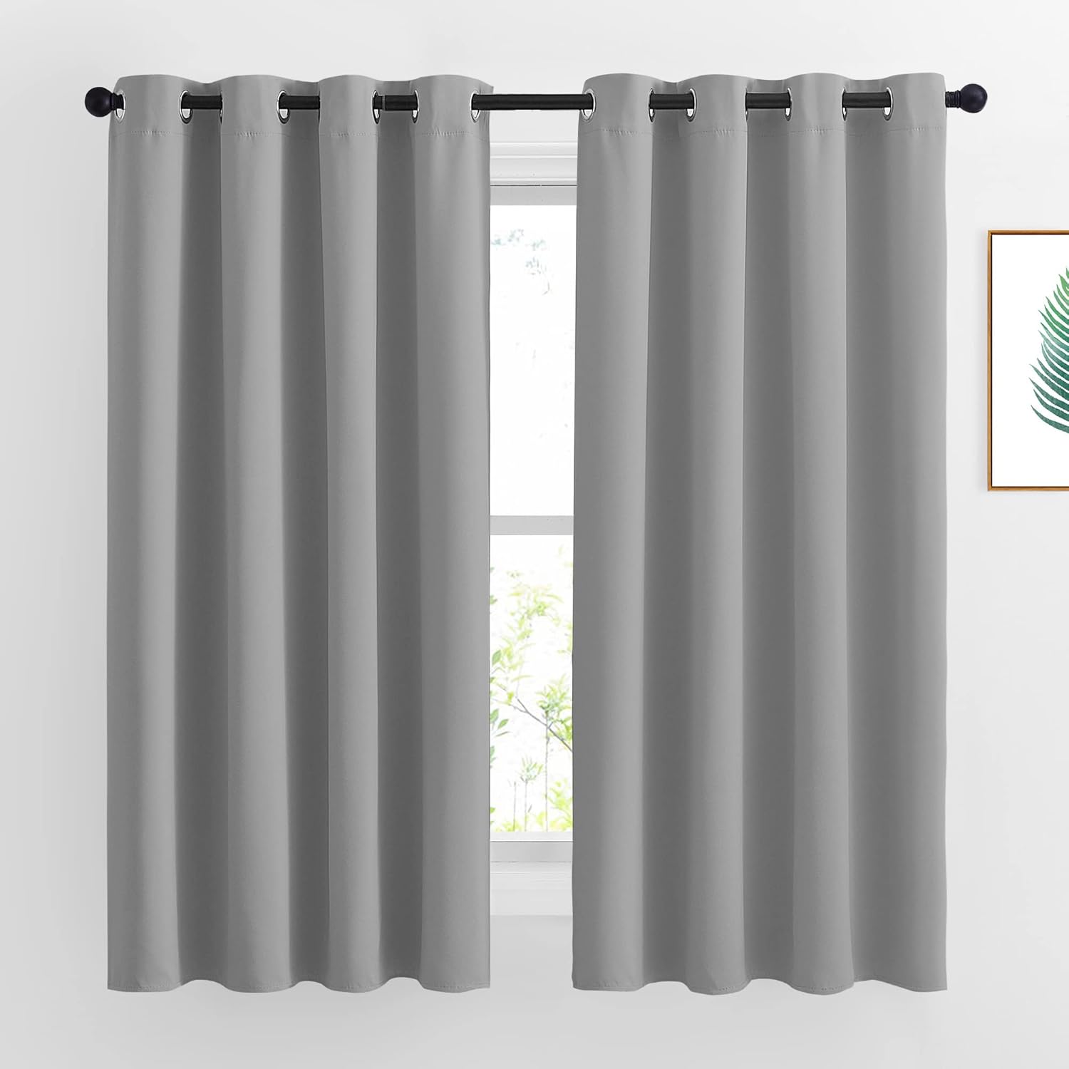 - Elegant Design: 2 panels per package. Each Blackout Curtain measures 52" wide x 63" long. The design of silver grommet (1.6-inch inner diameter) creates casual elegance for your house, which makes the curtains easy to install and slide.