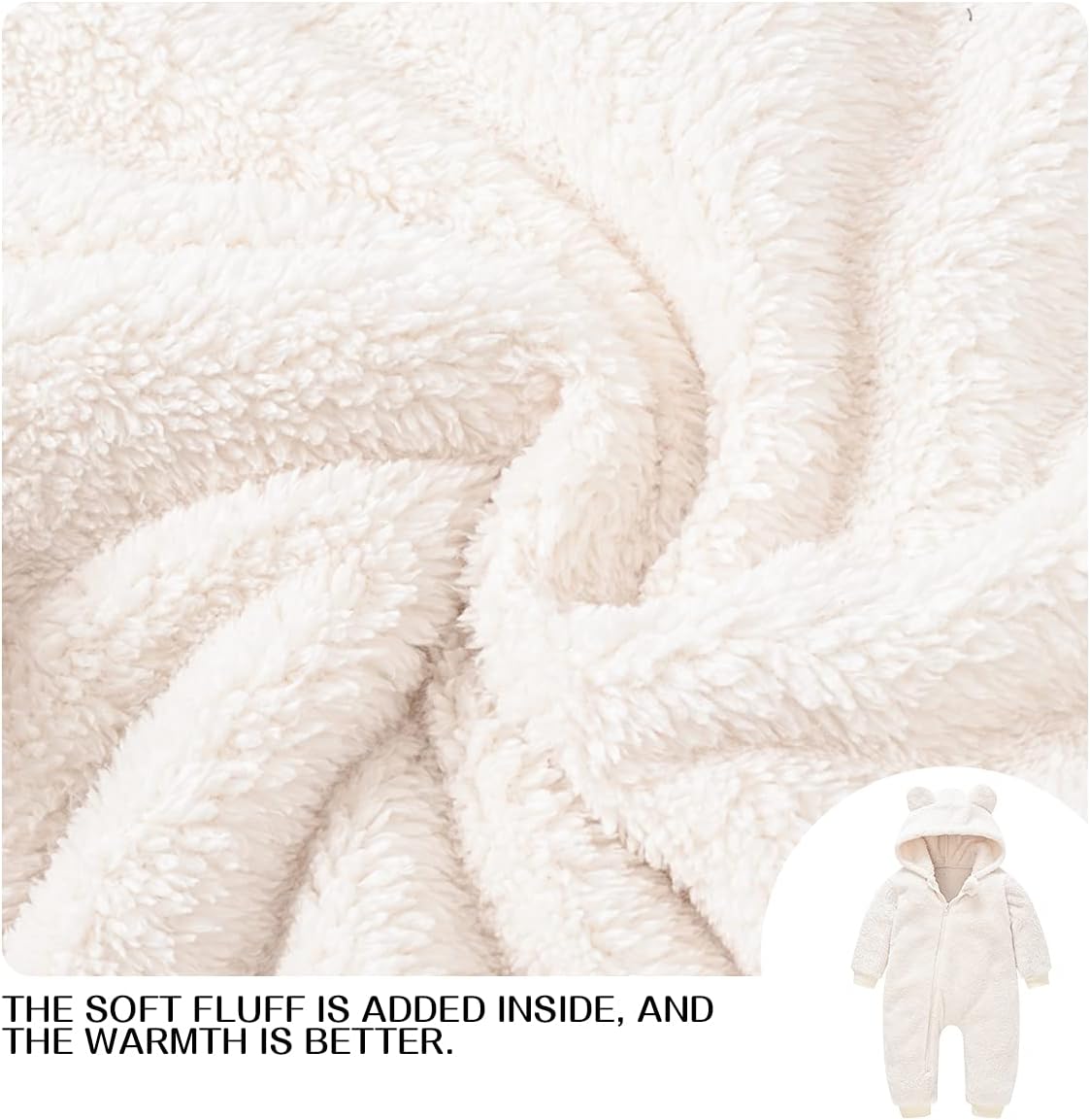 Baby Fleece Jumpsuits Infant Bear Ear Snowsuit Newborn Hooded Romper Warm Coat