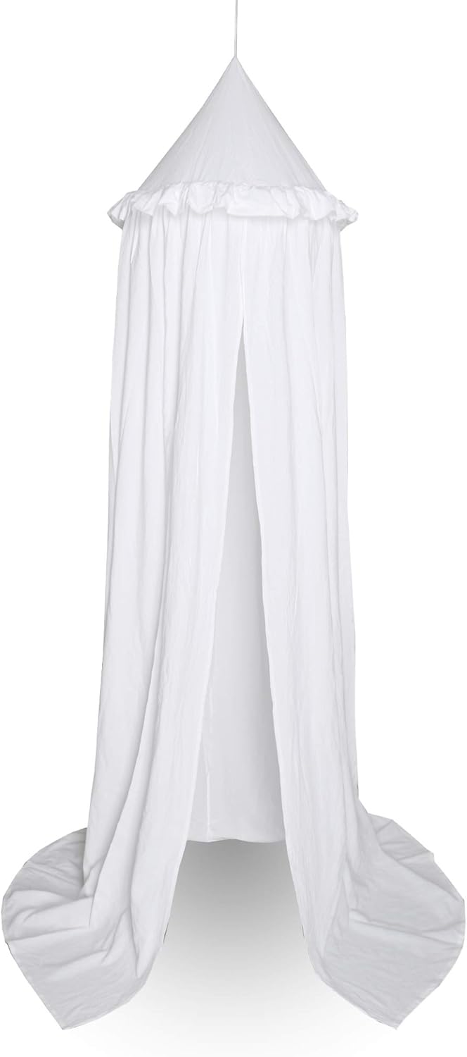 Kids Bed Canopy with Frills Cotton Cover Net for Crib Reading Nook Curtain Hideaway Hanging Round Tent Nursery Bedding Play Room Decor