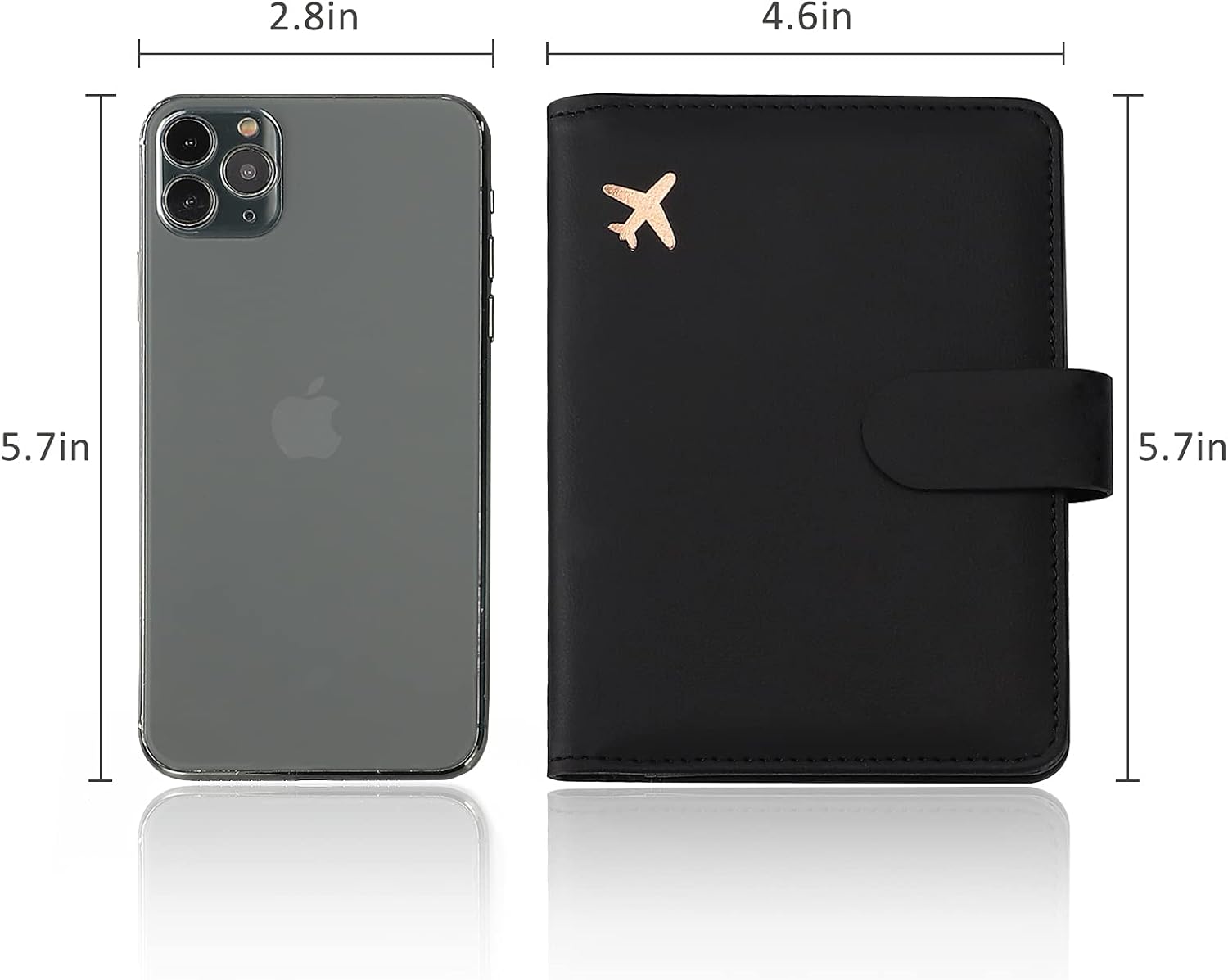 - 【Snap Button Closure and Security Protective】The passport holder with the hidden magnetic snap button closure design, which is safe and reliable to protect your travel items from being lost,to provide dual protection.Besides,RFID blocking shield material inside, Our passport case has a material engineered specifically to block 13.56 MHz or higher RFID signals and protect our important private information stored on your passport and credit cards from unauthorized scans.