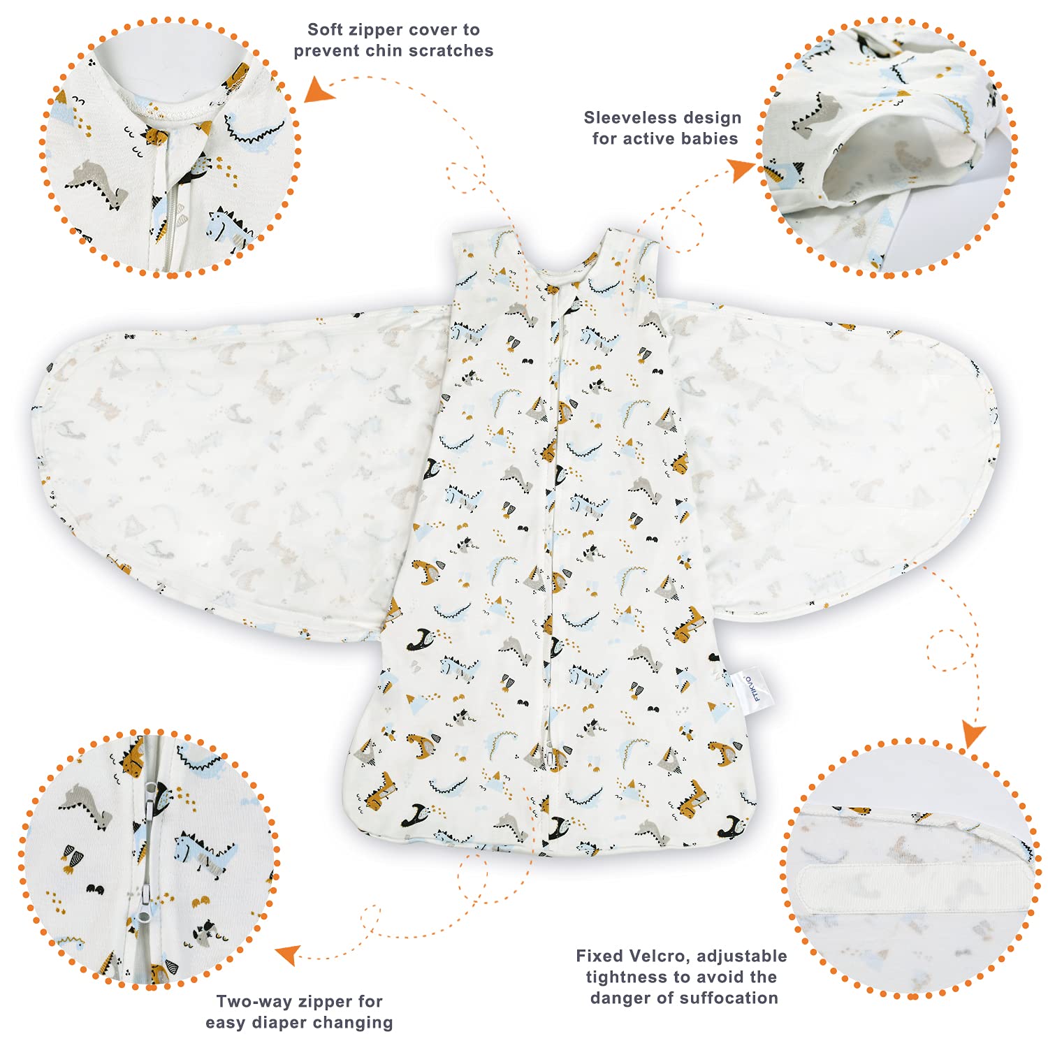 Swaddle-Blanket Baby Girl & Boy Swaddles Newborn Infant Transition 100% Cotton Wrap Blankets, 3-Way Adjustable Wearable Blanket, TOG 1.0 (Dinosaur, Small, 0-3 Month)