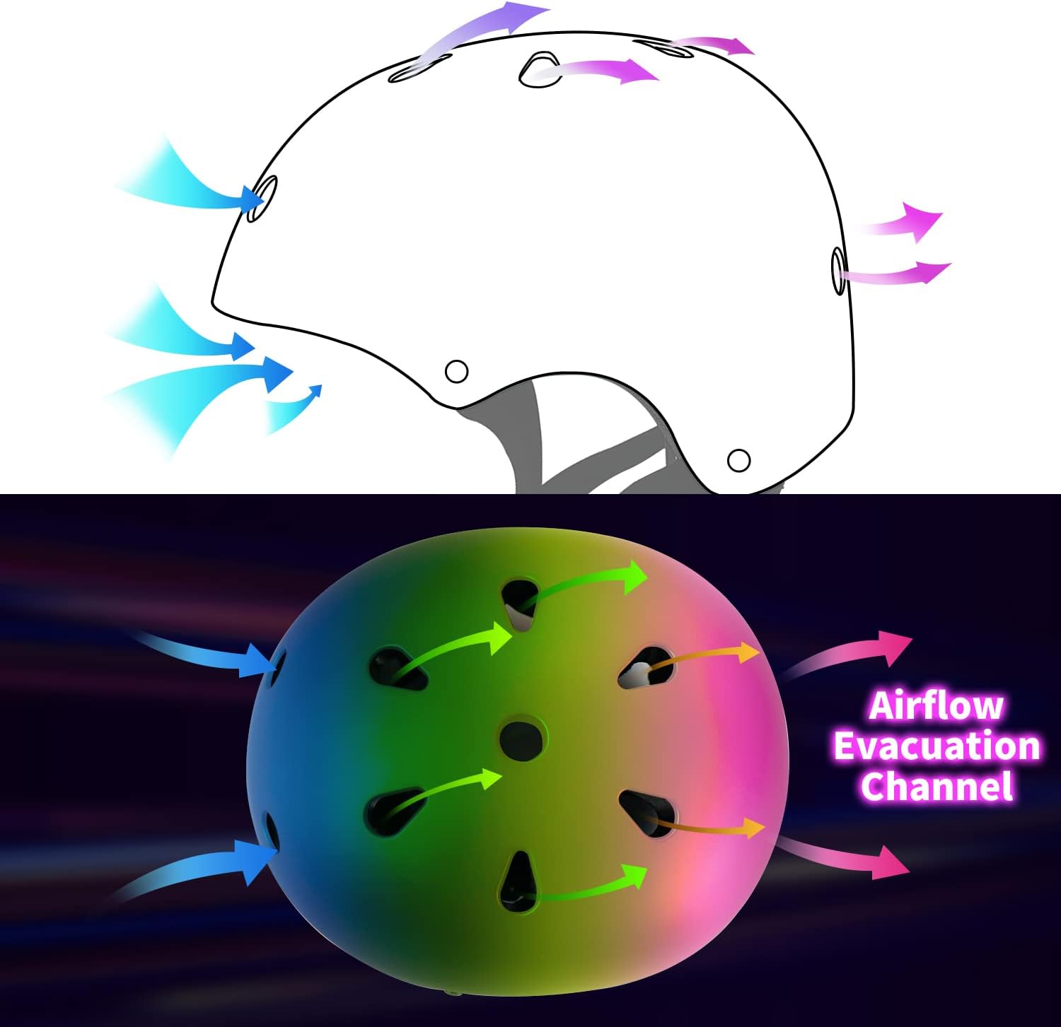 Adjustable Color Gradient Skateboard Helmet for 3-5-8-14+Ages【Toddler Kids Youth Adult】 Girls Boys Woman.Bike Helmet for Multi-Sports Cycling Bicycle Scooter Inline Roller Skate Rollerblading
