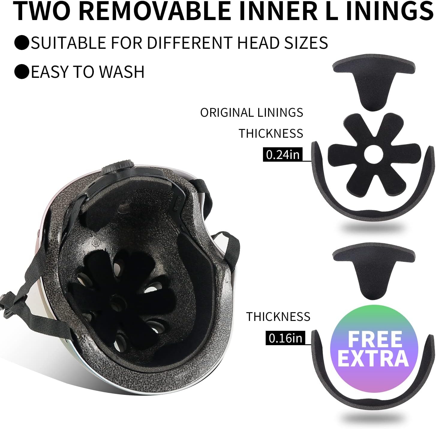 - How to use: Before you use the helmet, please untie the buttons that connect the straps on both sides of the kids helmet. Depending on the size of your head, rotate the red adjustable knob on the back of the helmet and attach the button in the middle of the strap.