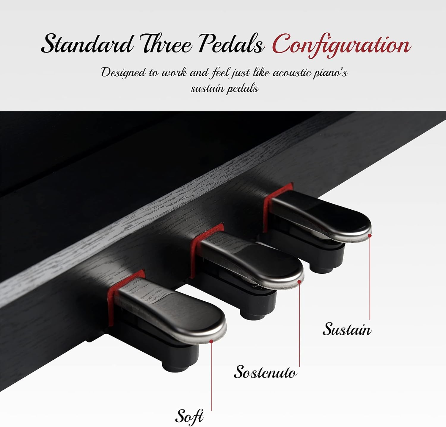 Lexington 88 Keys Weighted Digital Piano, Full Size Portable Hammer Action Electric Keyboard Piano for Beginners w/Furniture Stand, Power Adapter, Triple Pedals, Headphone Jack and Recording, Black