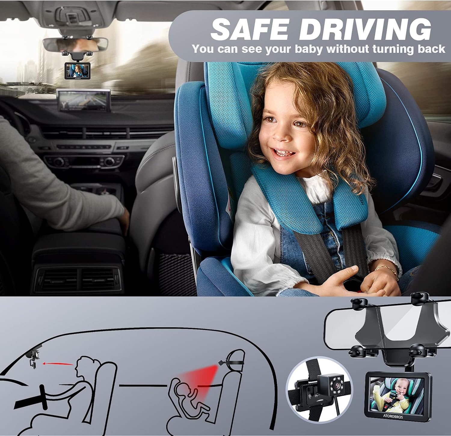 Baby Mirror for Car, ATOROBROS Baby Car Camera for Rear-Facing Seat with 4.3'' HD Display, Upgrade 360° Rearview Mirror Display Bracket, Easy and Safe to See Baby while Driving