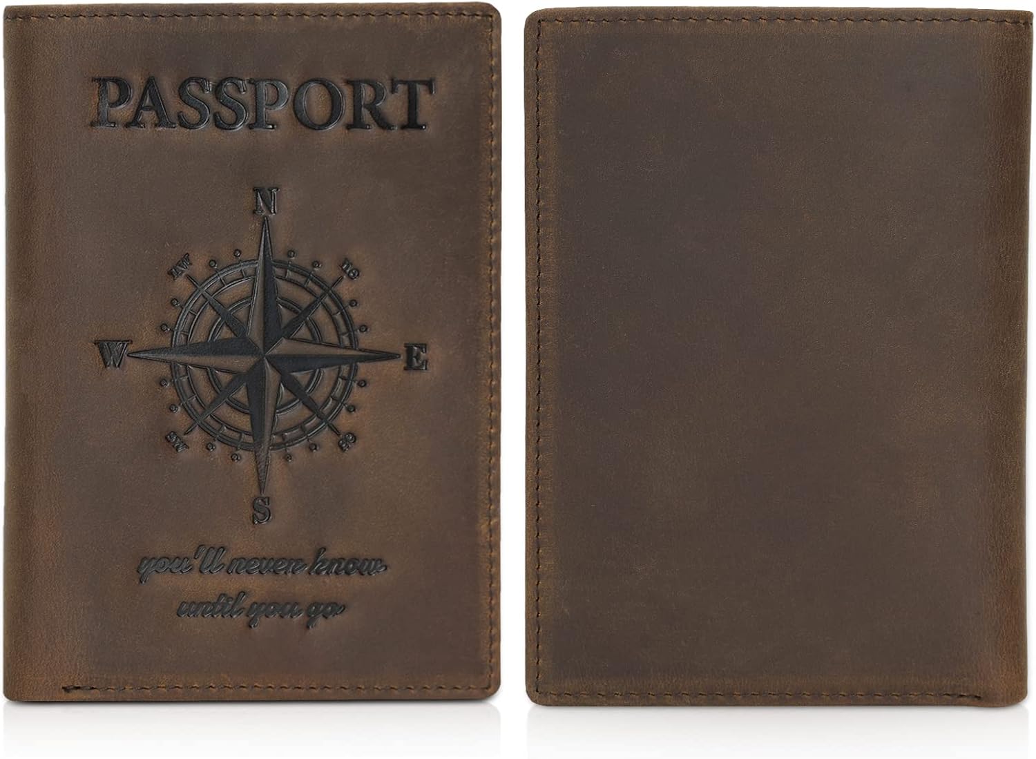 Polare Luxury RFID Blocking Leather Passport Holder Travel Wallet For Men and Women (Dark Brown Compass)