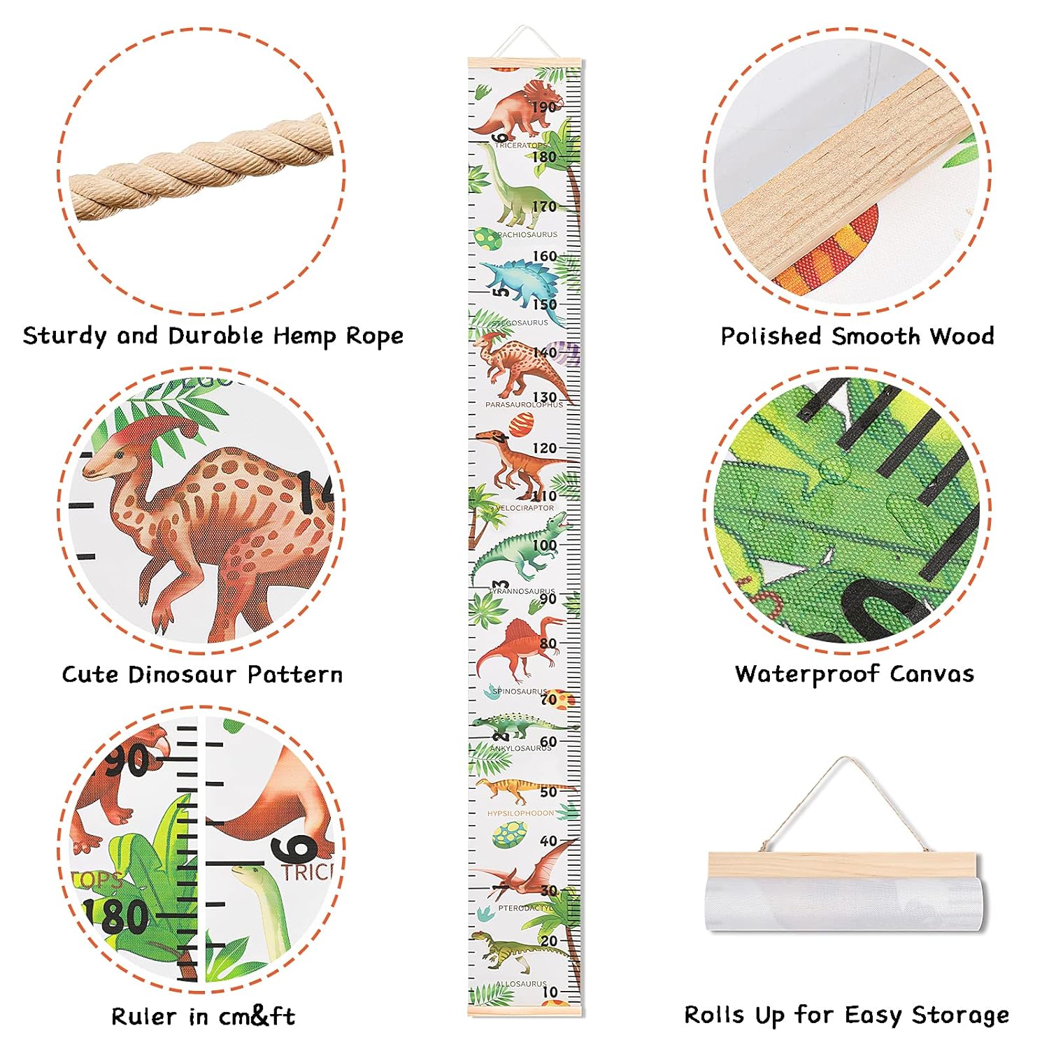 - Dinosaur Growth Chart: With every boys favorite dinosaur pattern on the growth chart, it is not only a cool wall decor, but also is very meaningful and enjoyable for every parents and kids to record and preserve precious memories from baby to adult.
