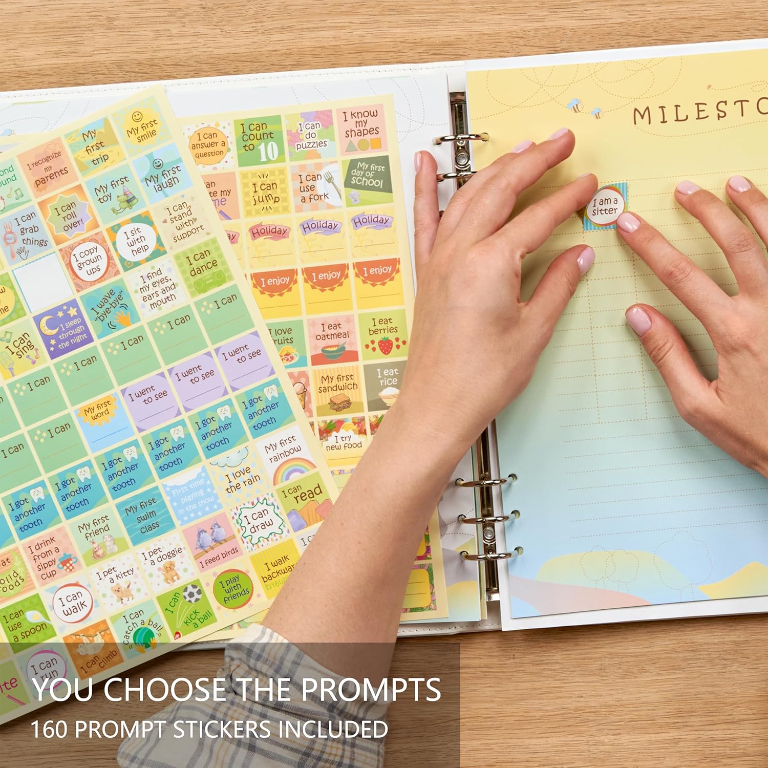 Leather-Bound Baby Memory Book Boy Girl - Beautiful Baby Scrapbook Album with Monthly Milestone Stickers | Loose-Leaf Elephant Baby Book Memory Keepsake Journal for Newborns