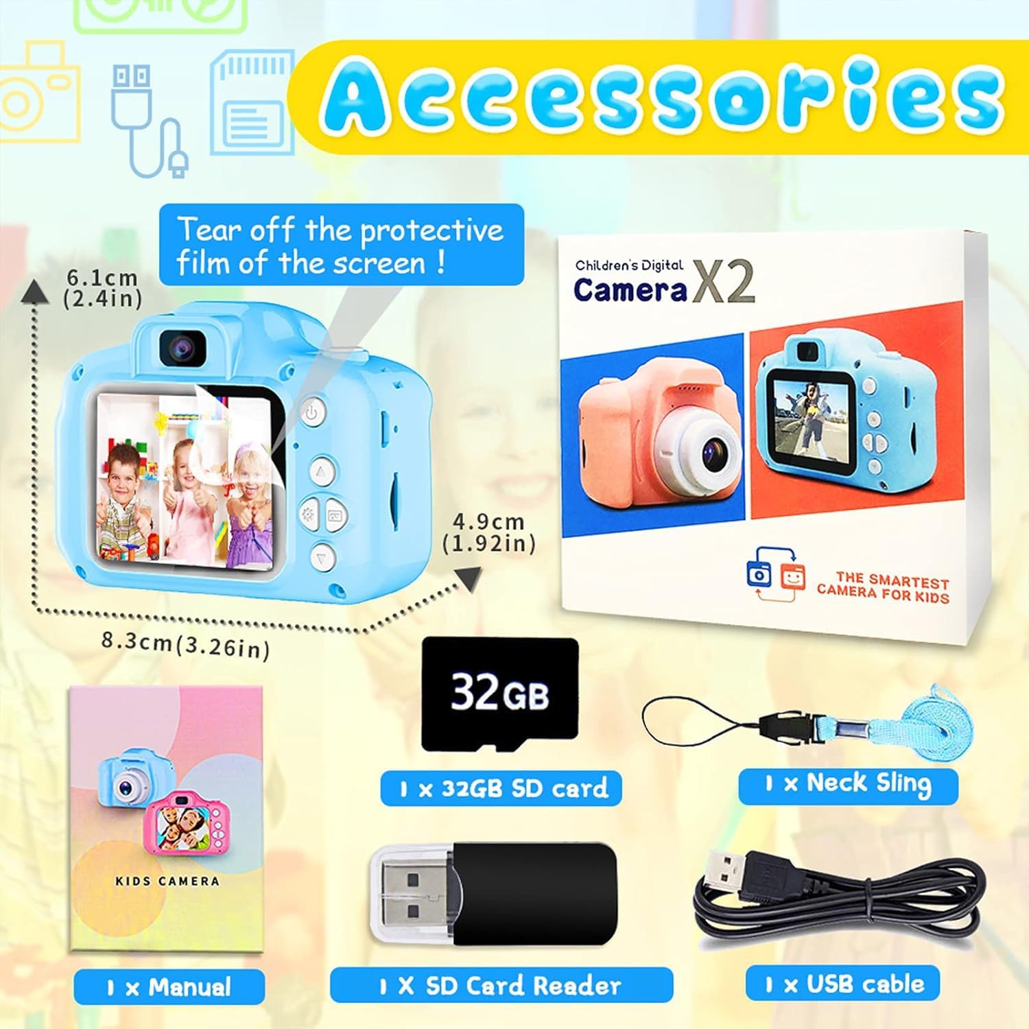 Upgrade Kids Selfie Camera, Christmas Birthday Gifts for Age 3-8, Kids Digital Cameras with HD Video,Portable Kids Camera, Toddler Toy for 3 4 5 6 7 8 Year Old Boy with 32GB SD Card (Blue) 1