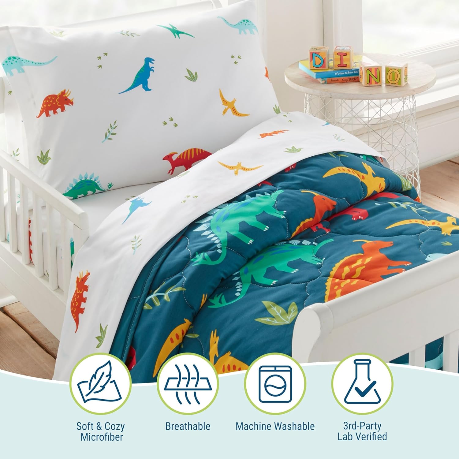 Wildkin Toddler Bed in a Bag – 4-Piece Microfiber Bedding Set with Comforter, Pillowcase & Sheets - Jurassic Dinosaurs