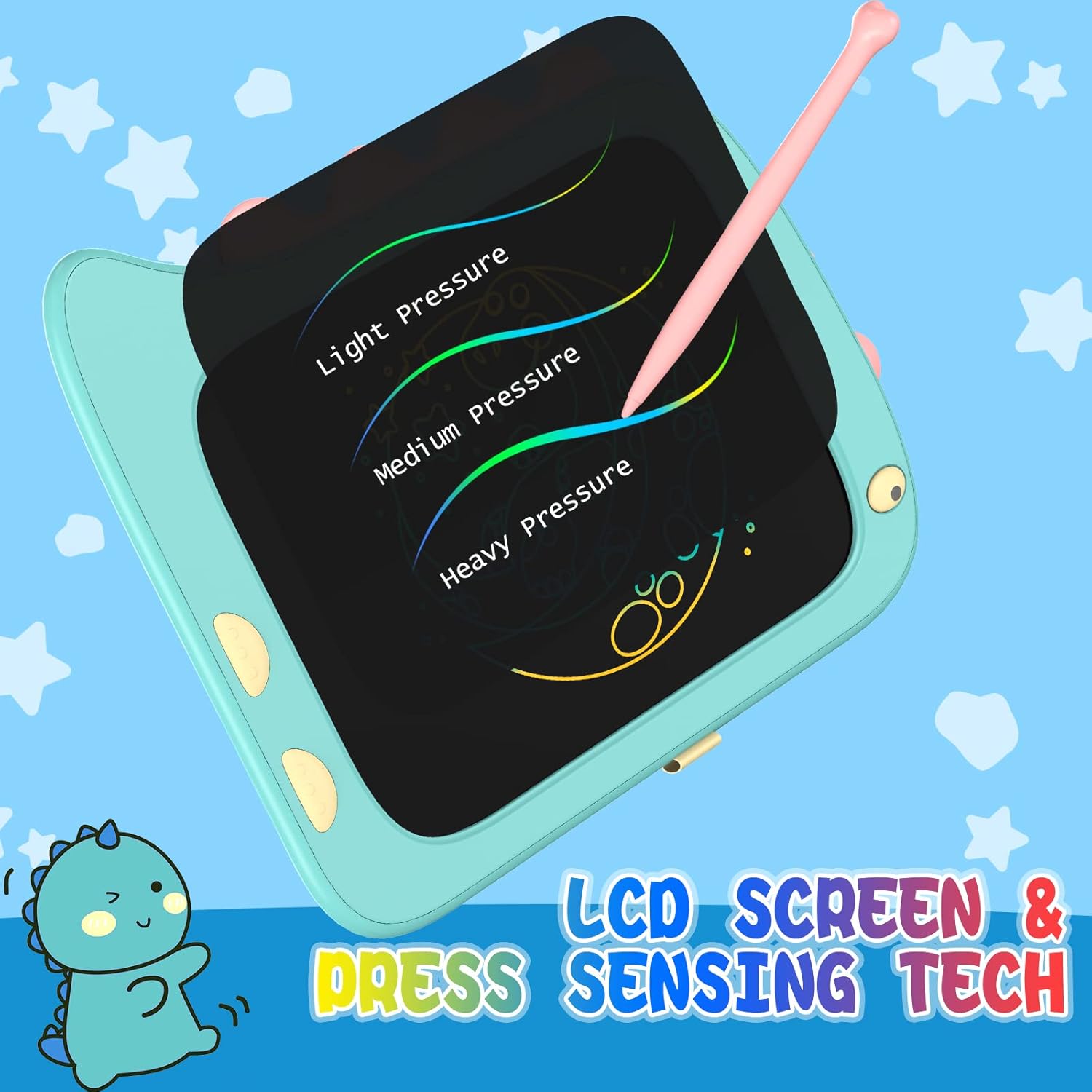 - 🦖 【SAFE & DURABLE & PORTABLE DRAWING TABLETS】 Made with safe & non-toxic & durable material, ensure the health and safety of your children; drawing board dinosaur toys for kids 3-5 years old boy can write about 100,000 times, just like an endless paper! And the CR2032 button battery can be used for up to 6 months! Environmentally and save your money! 8.5 inch Lightweight drawing tablets for kids is easy to carry anywhere (school, airplane, car, road trips, restaurant, sofa, outside etc)