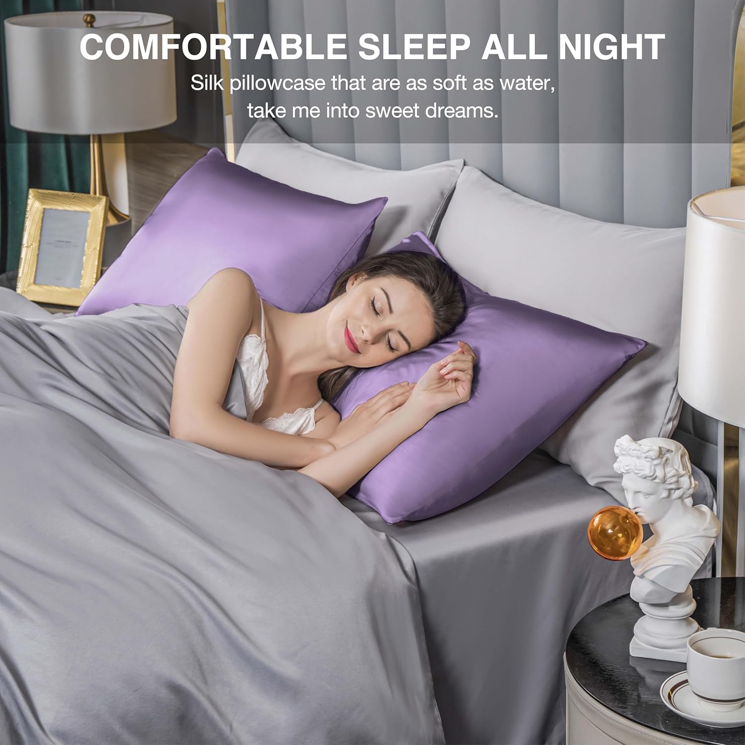 Mulberry Silk Pillowcase for Hair and Skin,Queen Size Cooling Silk Pillow Case with Hidden Zipper,Allergen Proof Dual Sides Soft Breathable Smooth Silk Pillow Cover for Women(Queen,Violet)