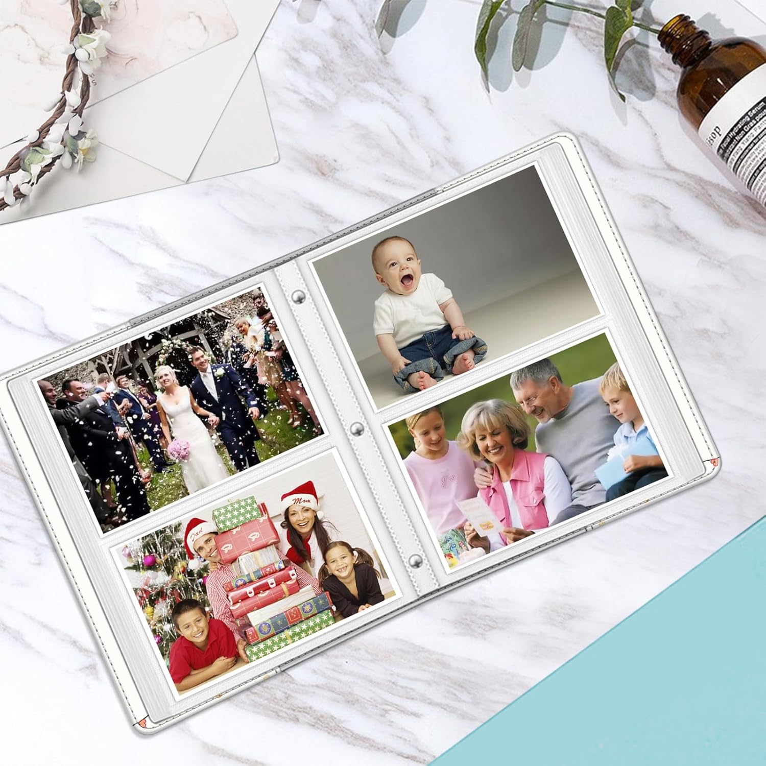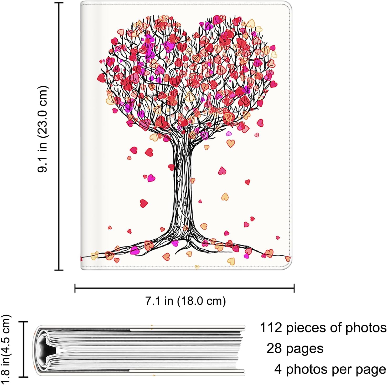 - Hold 112 photos in total. This album contains 28 individual pages with 2 inserts per side [4 photos per page], opens like a book for easy viewing. Designed with insert pocket for credit cards and name cards. Best for weddings, engagements, graduations, baby photos or other arty obsessions.