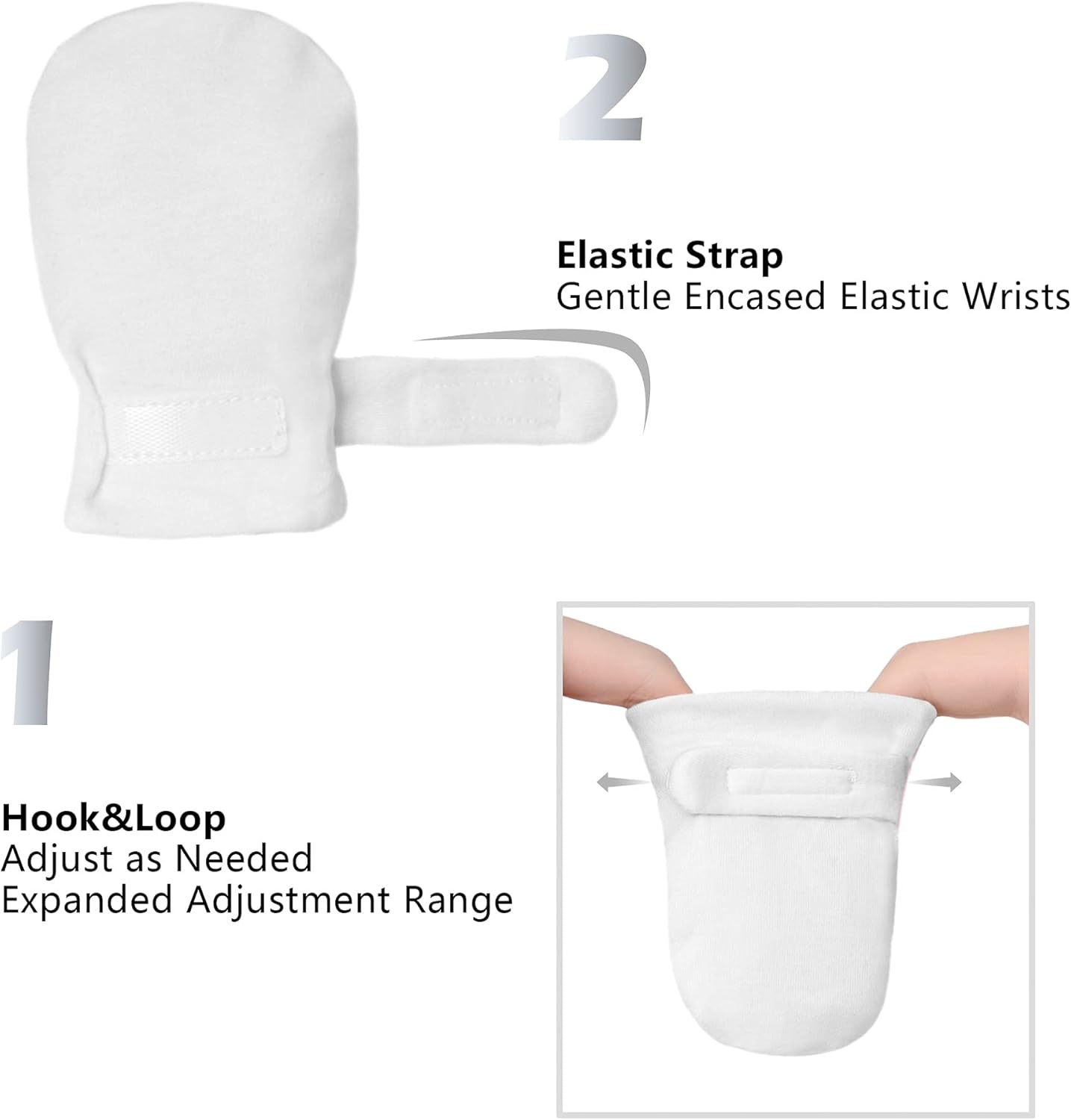 Newborn Baby No Scratch Mittens Stay On, 100% Cotton Breathable, Adjustable Infant Gloves for Baby Boys Girls Mittens