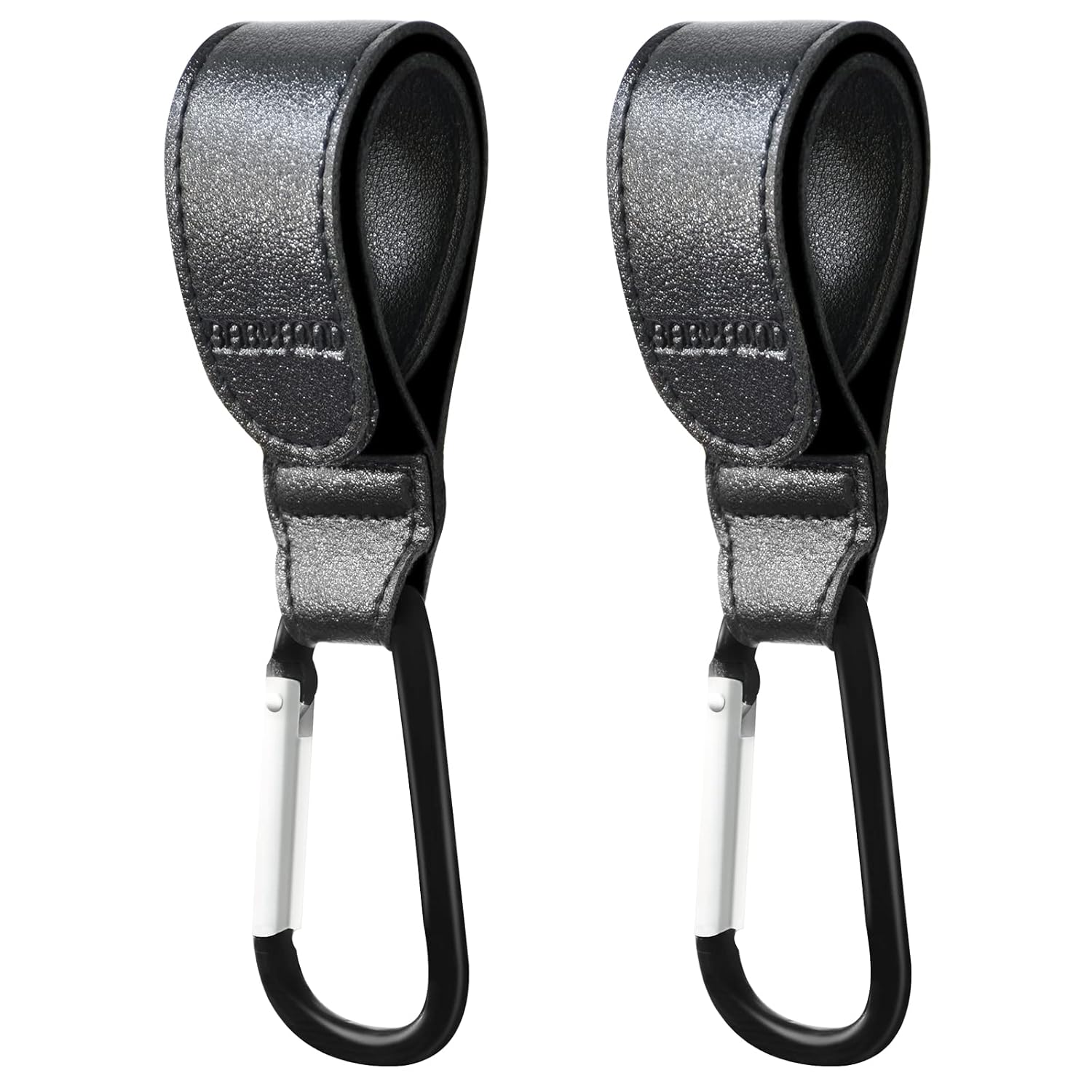 Stroller Hooks for Hanging, 2 PCS Durable Leather Style Stroller Clip Straps, Baby Stroller Hooks for Diaper Bags Grocery Shopping Bags, Mommy Hook for Stroller (Black)