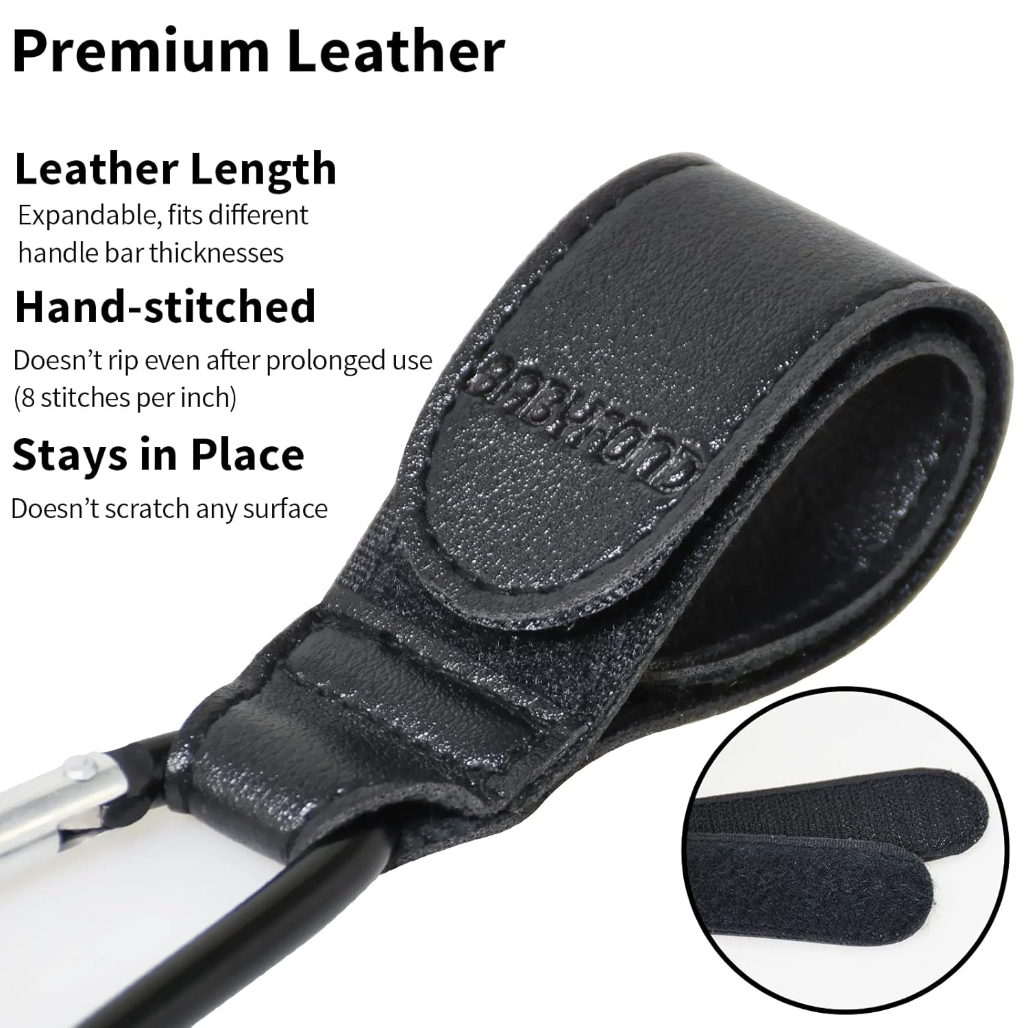 - ❤️👶【Premium Materials】Stroller hook made of sturdy & durable faux leather and velcro, large matte black carabiner can handle over 12 lbs with ease, and can hang multiple bags at the same time. This mom hook for stroller is a must have for closer bonding experience with your baby.
