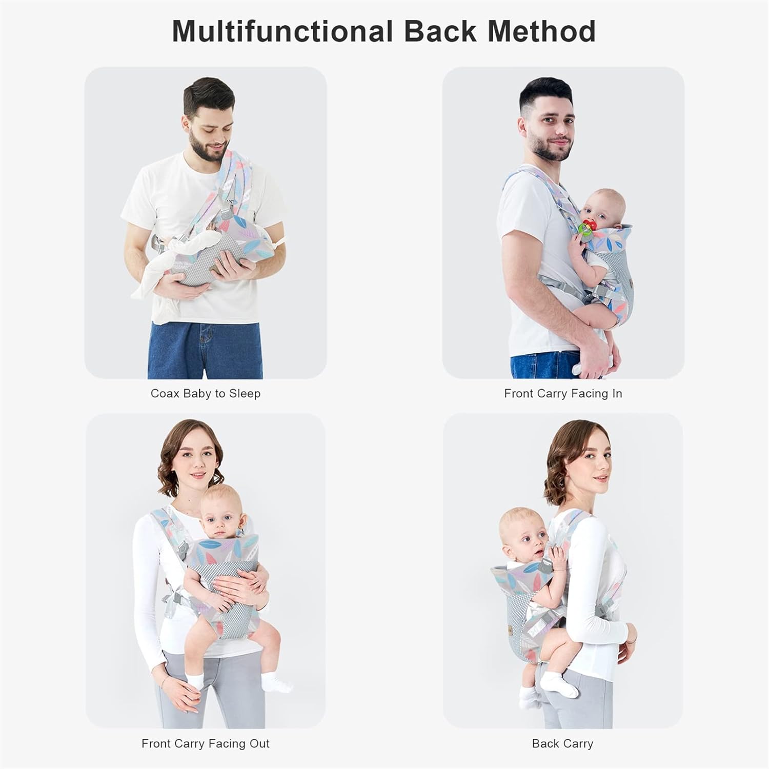 - 4-in-1 Convertible Carrier: The infant carrier is equipped with an adjustable waist stool, straps and backboard, convertible to carry your baby in front, on back or coax baby to sleep. Suitable for babies weight from 7 to 45 lbs and age from 3 to 36 months. It can be easily adjusted to fit different wearers from petite to larger body types. All parents can share the joy of baby wearing