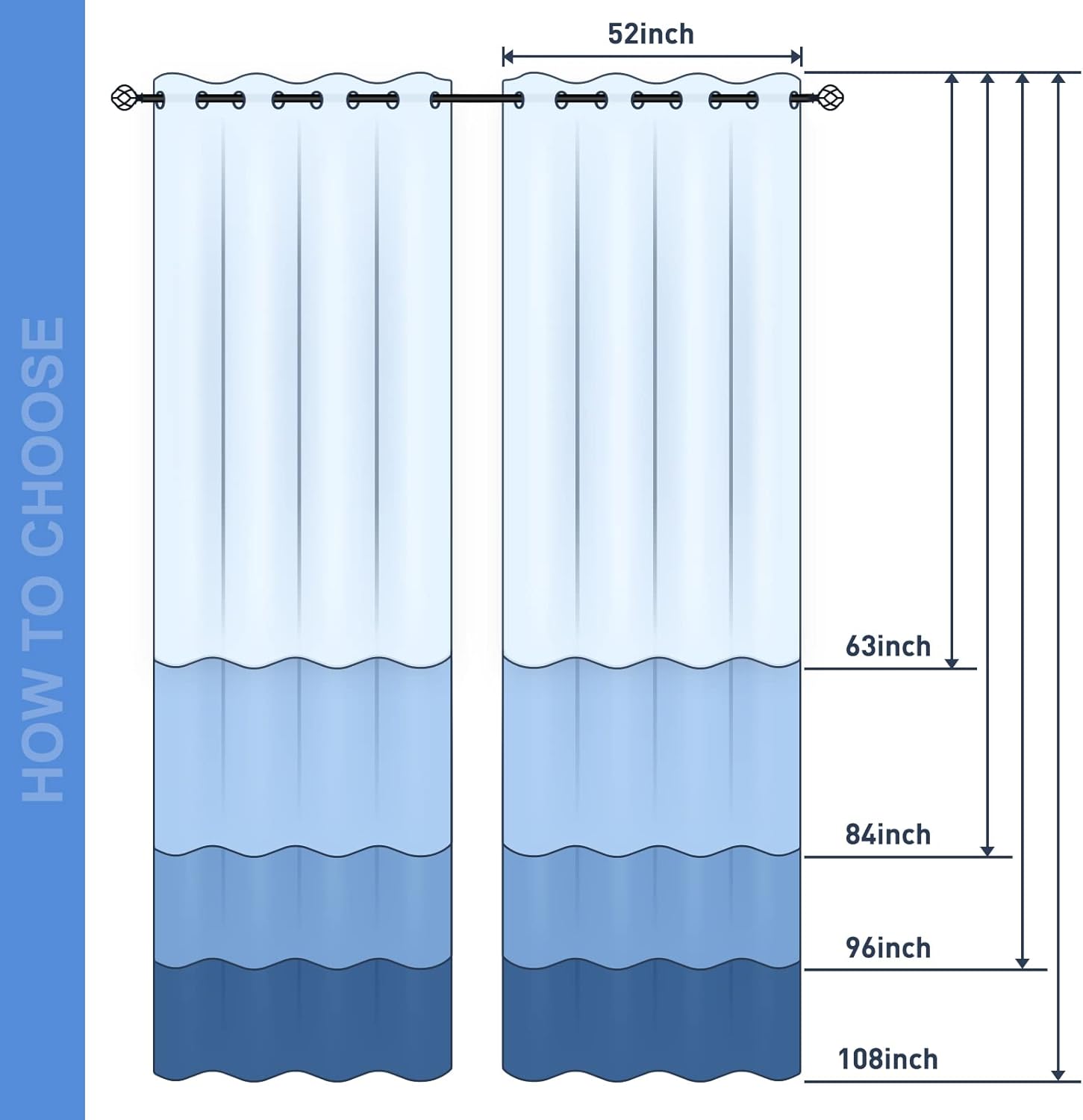 - High Quality Material: Our window curtains are made of 100% polyester, the package includes 2 single sided printed blackout curtains, the size of each curtain is 52" wide x 84" length. The curtains fabric is breathable, long-lasting, anti-wrinkle, soft to the touch, full of drape