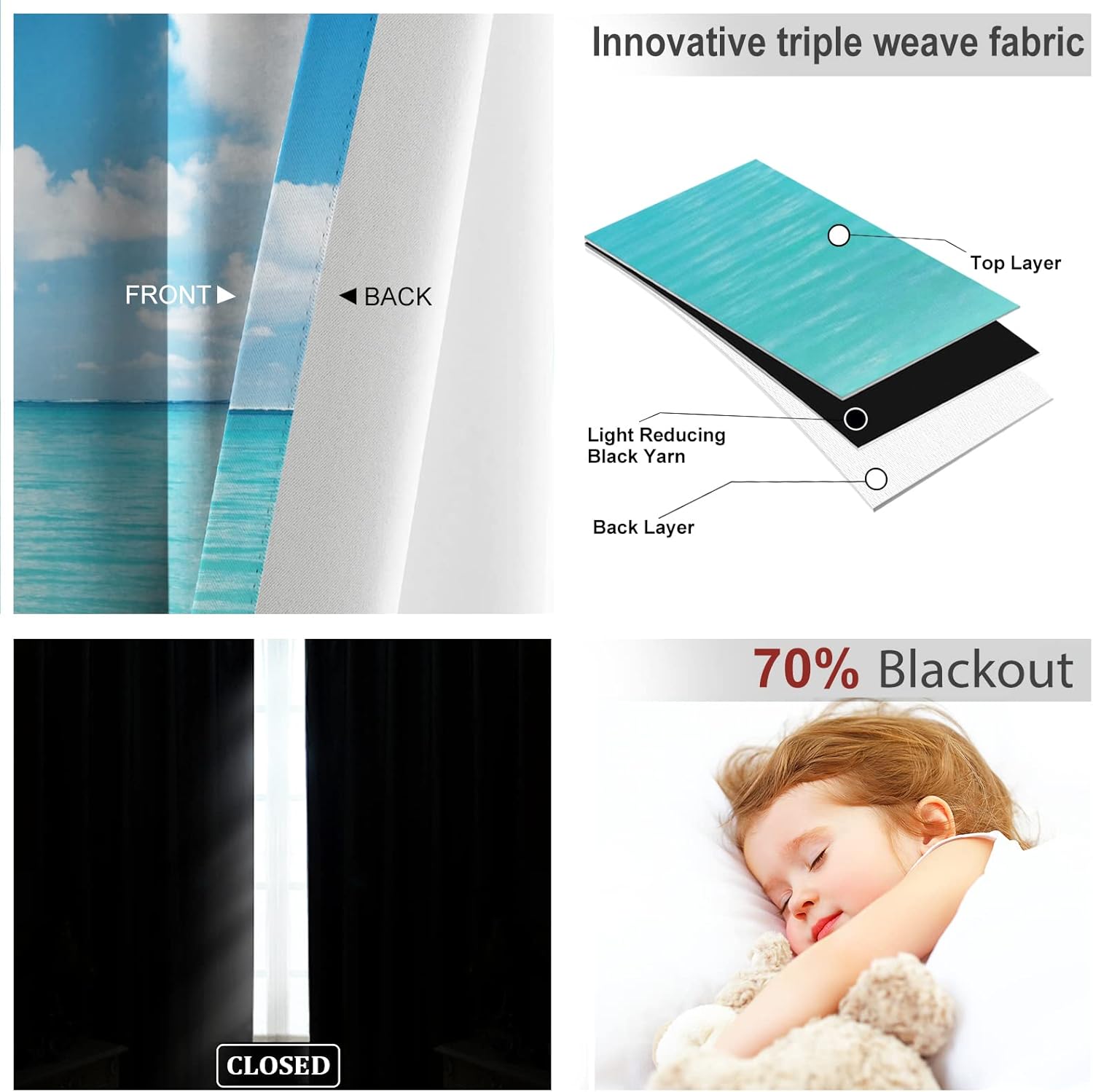 Aimego Ocean Beach Blackout Curtains Tropical Seaside Theme Blue Sea Sky Window Drapes Decor for Bedroom Living Room Grommet Top Room Darkening Curtains 2 Panel Set, 52" X 63"