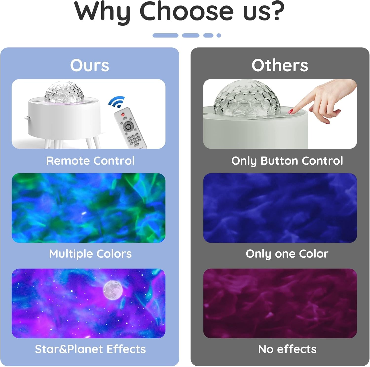 Lumoonosity Ocean Wave Projector – Water Light Projector for Bedroom, Kids Room Decor – Ocean Galaxy Night Light with Speaker - Starry Light with 9 Planet, Star, Water Wave Effect