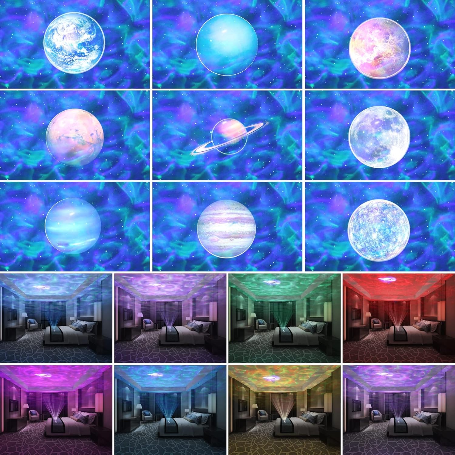 - 24 Color and Patterns Modes Starry Projector: You can enjoy the magnificent light show of 14 Galaxy colors and 10 planets(9)/stars(1) combinations that turn your space into a magic place. The light can be easily controlled by a remote or button on the light.