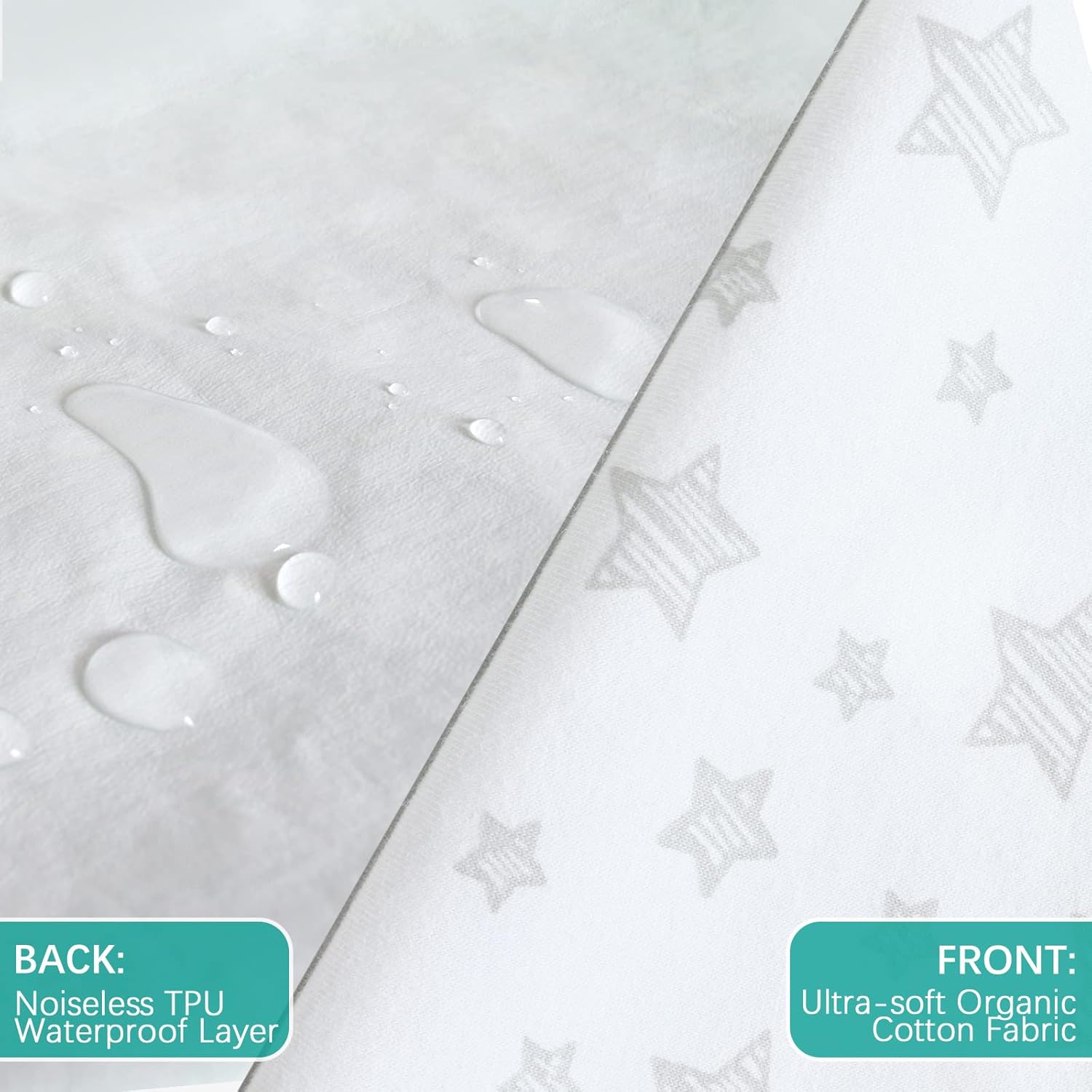 Waterproof Pack n Play Fitted Sheets 2 Pack,100% Cotton Mini Crib Mattress Cover Protector 38" X 25" Fits for Baby Playpen/Playard Mattress, Portable Crib Sheet, White & Grey Star Print