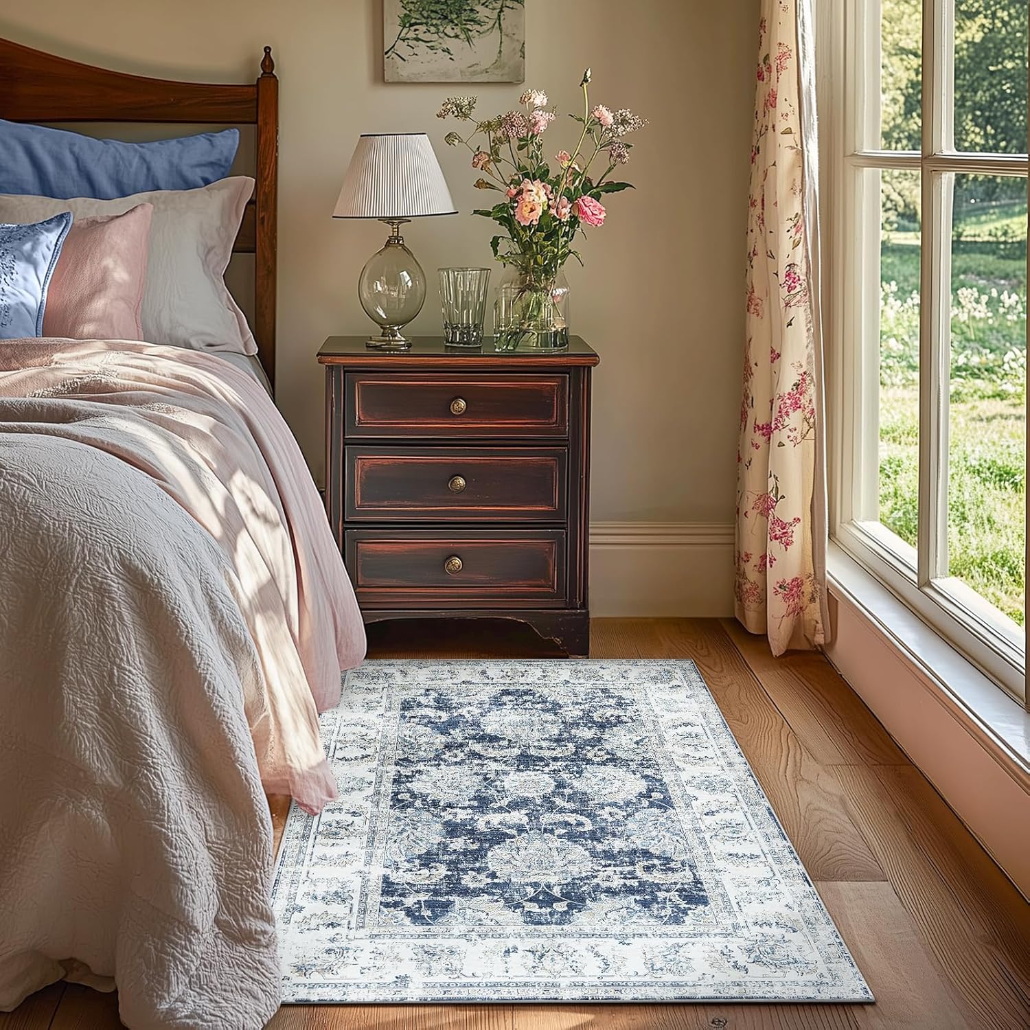 - Freshen Entryway & Kitchen: Perfectly sized to welcome guests at doorway or brighten cozy kitchen corner, this compact rug brings vintage floral charm without adding bulk. Its slim, easy-care design fits snugly in busy spots, making everyday life a little more stylish and effortless.