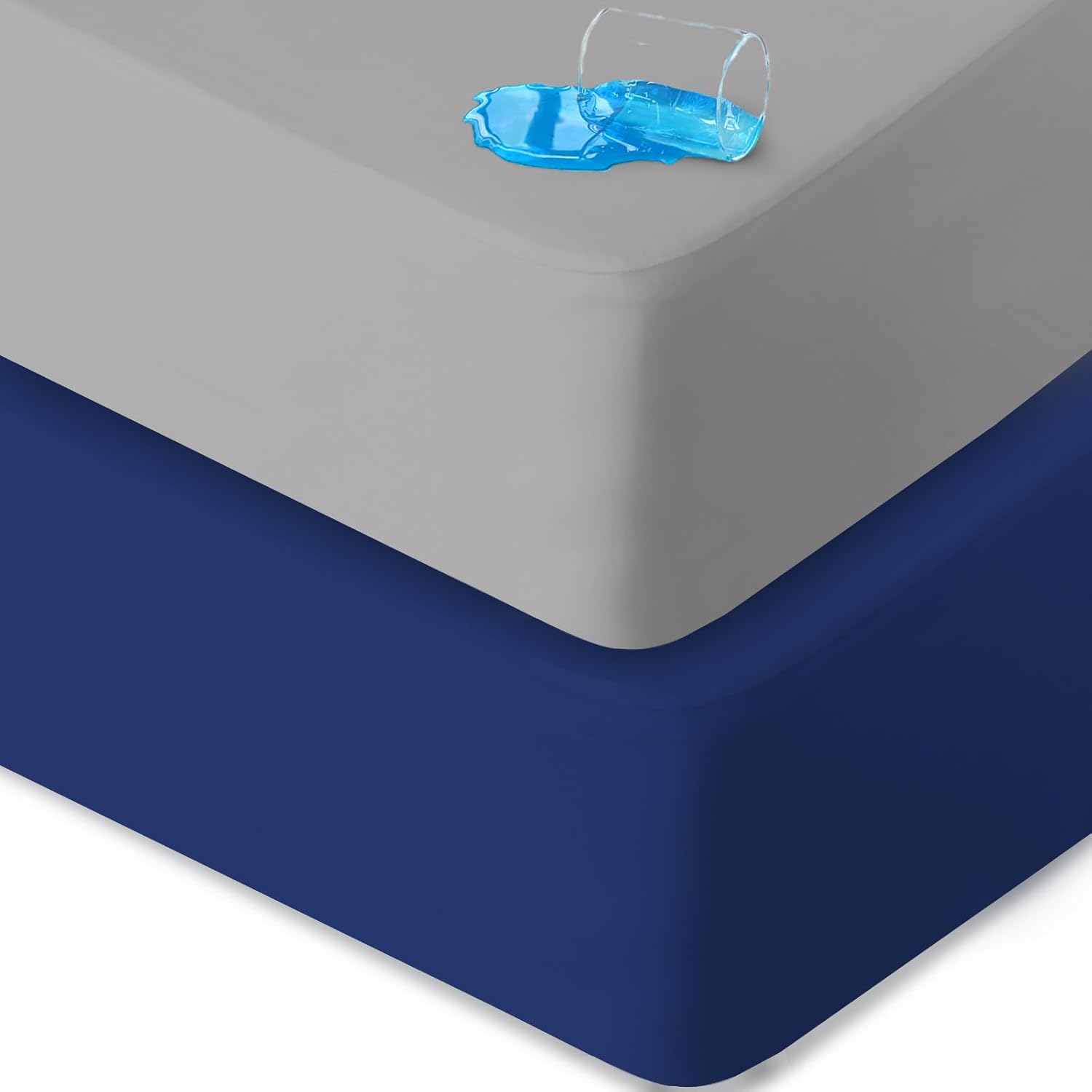 Crib Sheets Waterproof 2 Pack, Crib Mattress Protector, Toddler Fitted Crib Sheet Neutral, Ultra Soft & Breathable Toddler Bed Sheets for Boys and Girls, Grey & Navy