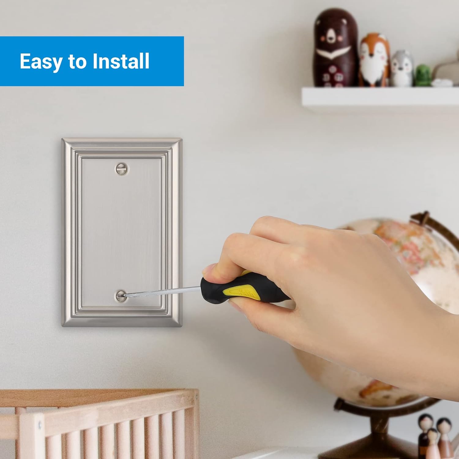 DEWENWILS 4-Pack Blank Wallplates, Brushed Nickel Outlet Cover, Stanless Steel