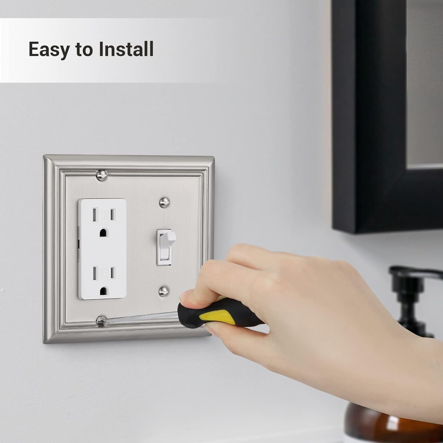 - 【Elegant&Simple Design】Brushed nickel finish fits with texture on the edge, giving your home a nice modern look; making the receptacles or light switches more decorative