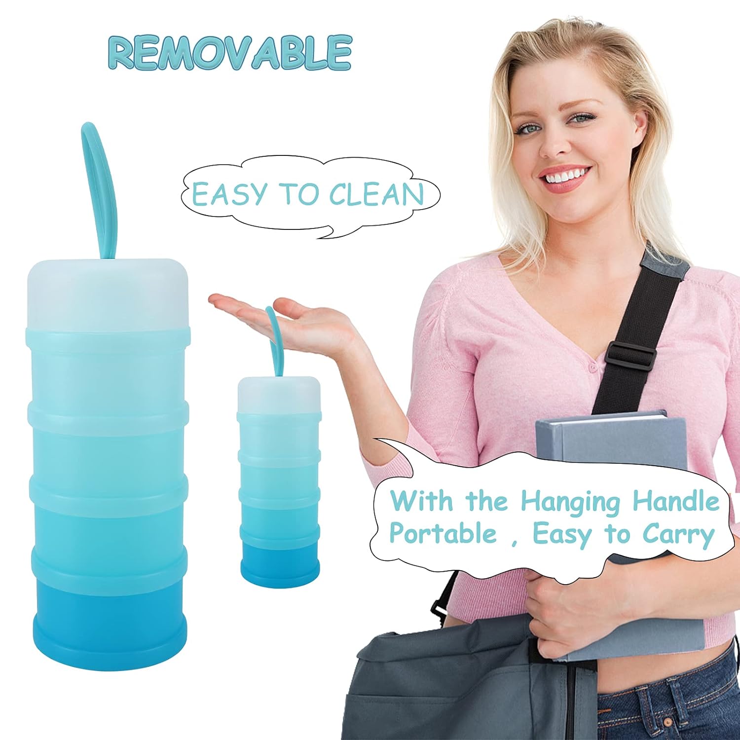 - Capacity - 4 layers design, you can put quantity of milk powder to be taken at one time in each layer box, you can carry 4 times of milk powder for baby outdoor need, very convenient and practical.