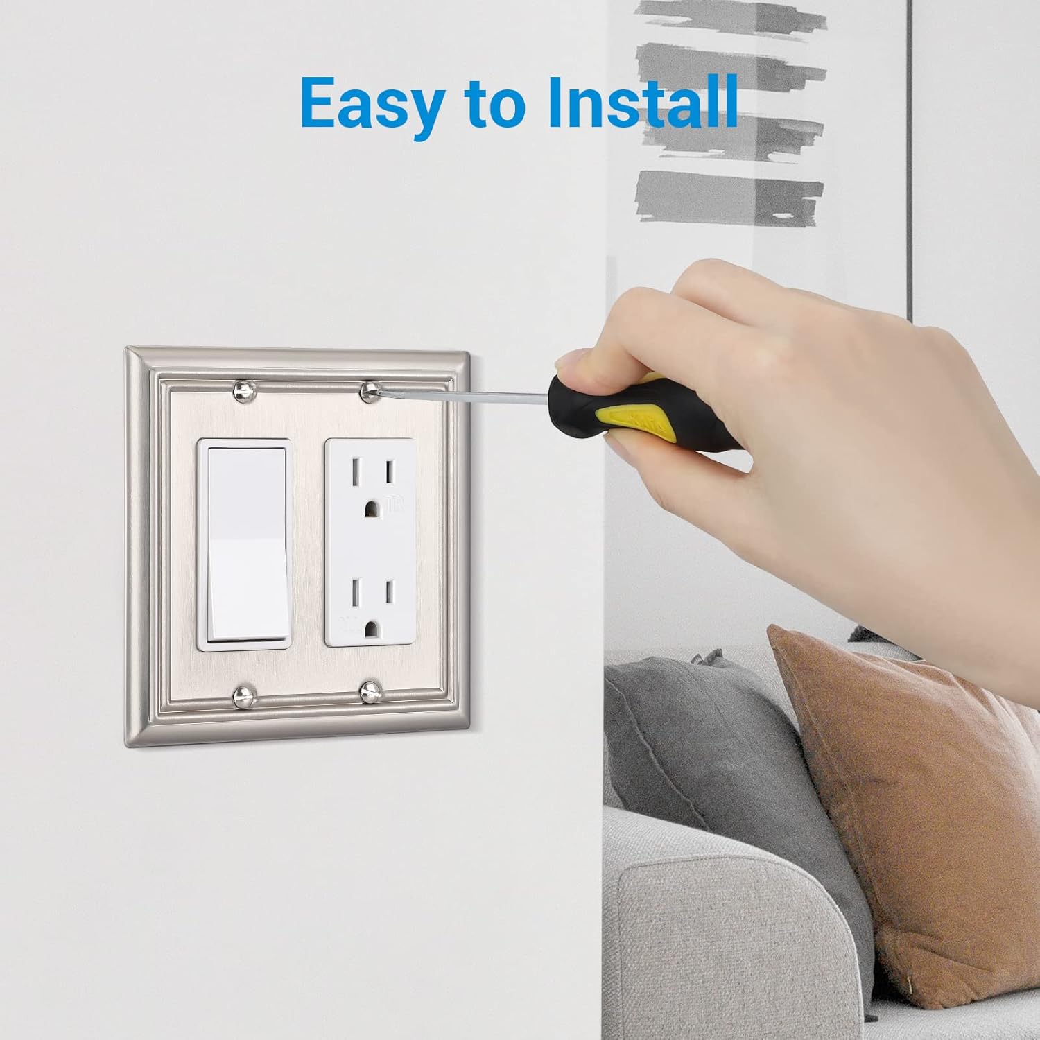 - 【Elegant&Simple Design】Brushed nickel finish fits with texture on the edge, giving your home a nice modern look; making the receptacles or light switches more decorative
