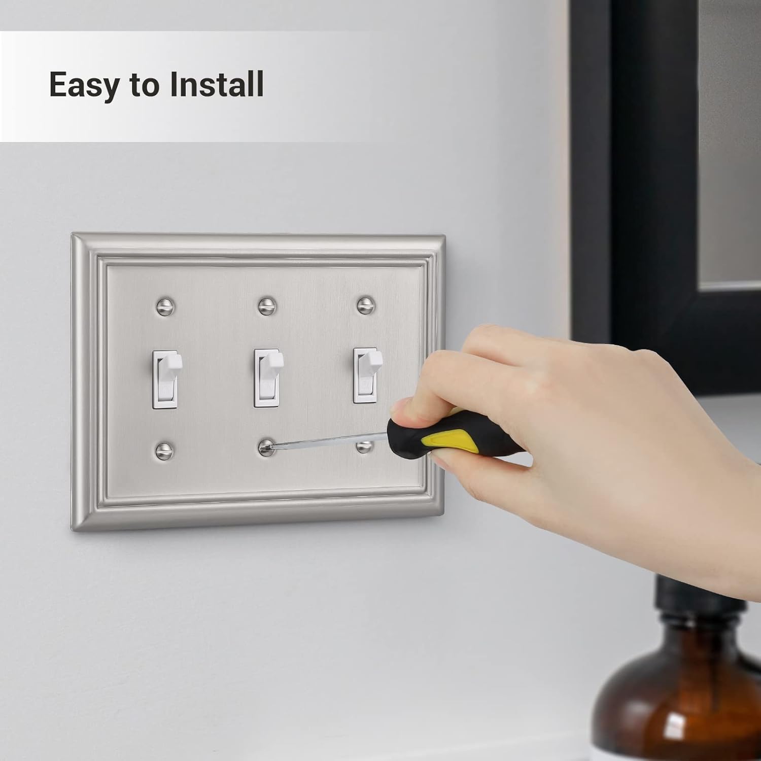 DEWENWILS Tripple Toggle Wallplates, Brushed Nickel Light Switch Covers, Heavy Duty Matel Material, Pack of 2