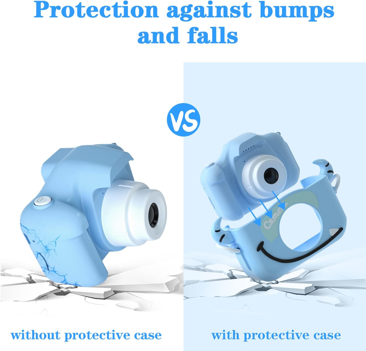 - 【Protective Silicone Case Included】This kid's Camera is Environmentally friendly materials with safety standards, it’s non-toxic, shock-resistant, and durable materials. We all know little ones are still learning to be careful with things. The anti-drop silicone casing provides the toddler camera with shockproof protection against bumps and falls. The camera for kids has an enduring lanyard for portability which is specially designed for children to hang the mini camera on their neck.