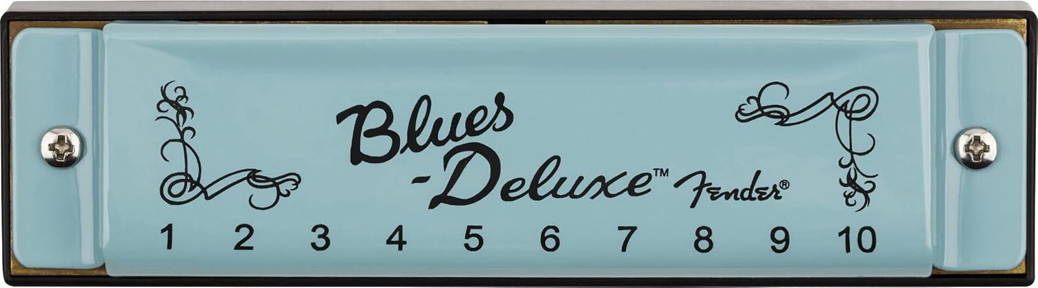 Fender Blues Deluxe Harmonica, Stocking Stuffers, Guitar Accessories, Key of C 10 Holes, Includes Hard Plastic Carrying Case, Daphne Blue