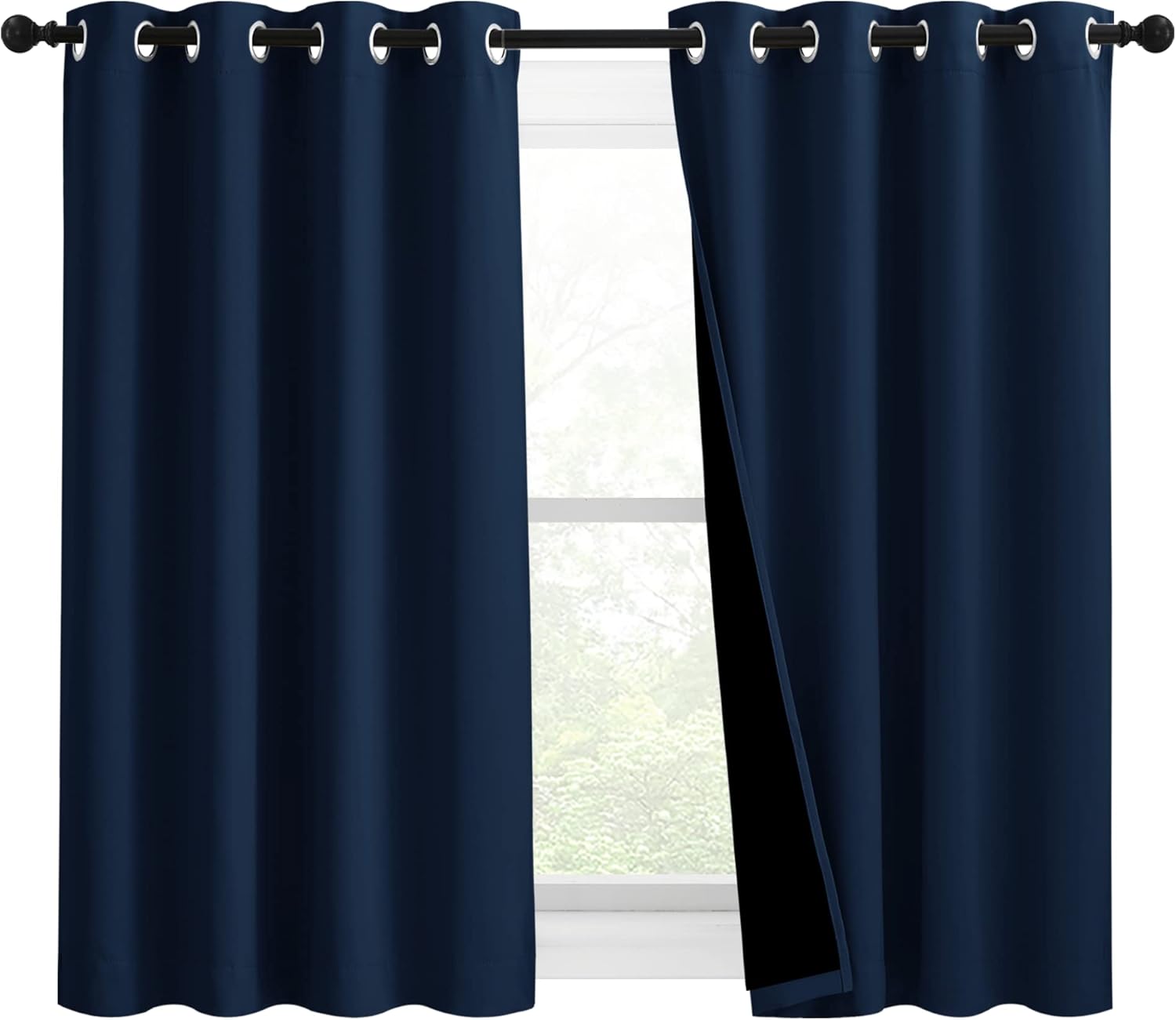 NICETOWN 100% Blackout Curtain Panels, Thermal Insulated Black Liner Curtains for Nursery Room, Noise Reducing and Cold Blocking Drapes for Windows (Set of 2, Navy Blue, 46" Wide by 54" Long)