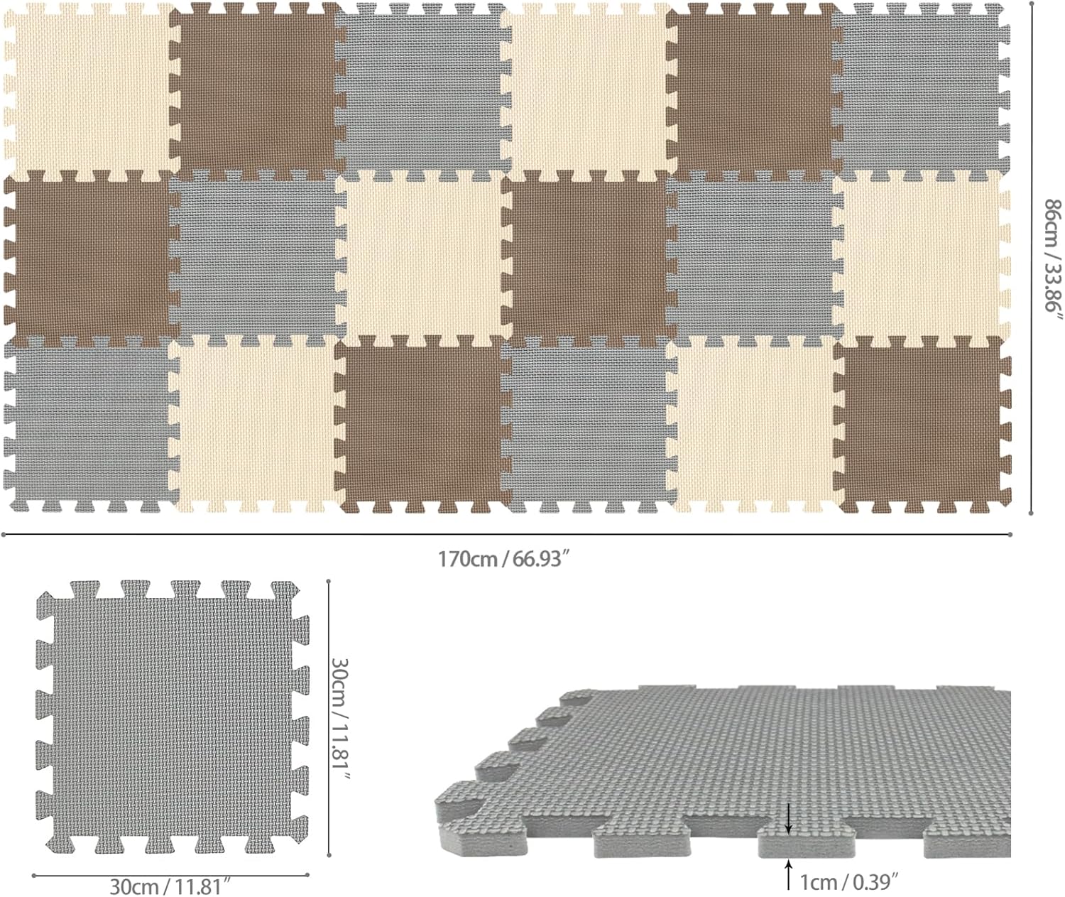 qqpp EVA Rubber 18 Tiles Interlocking Puzzle Foam Floor Mats - Baby Play Mat for Playing | Exercise Mat for Home Workout. Brown, Beige, Gray. QC-FJLb18N