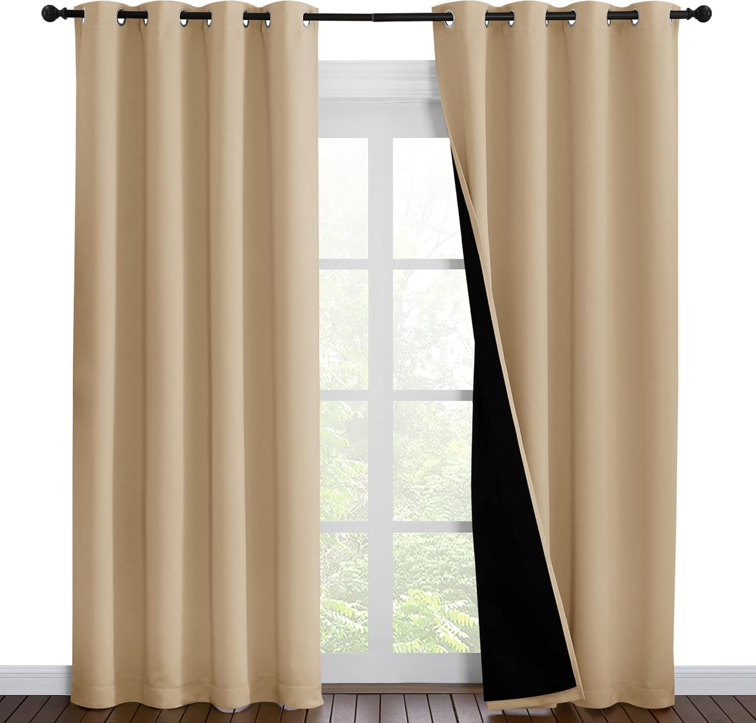 NICETOWN Living Room Completely Shaded Draperies, Privacy Protection & Noise Reducing Ring Top Drapes, Black Lined Insulated Window Treatment Curtain Panels(Biscotti Beige, 2 Pieces, W55 x L86)