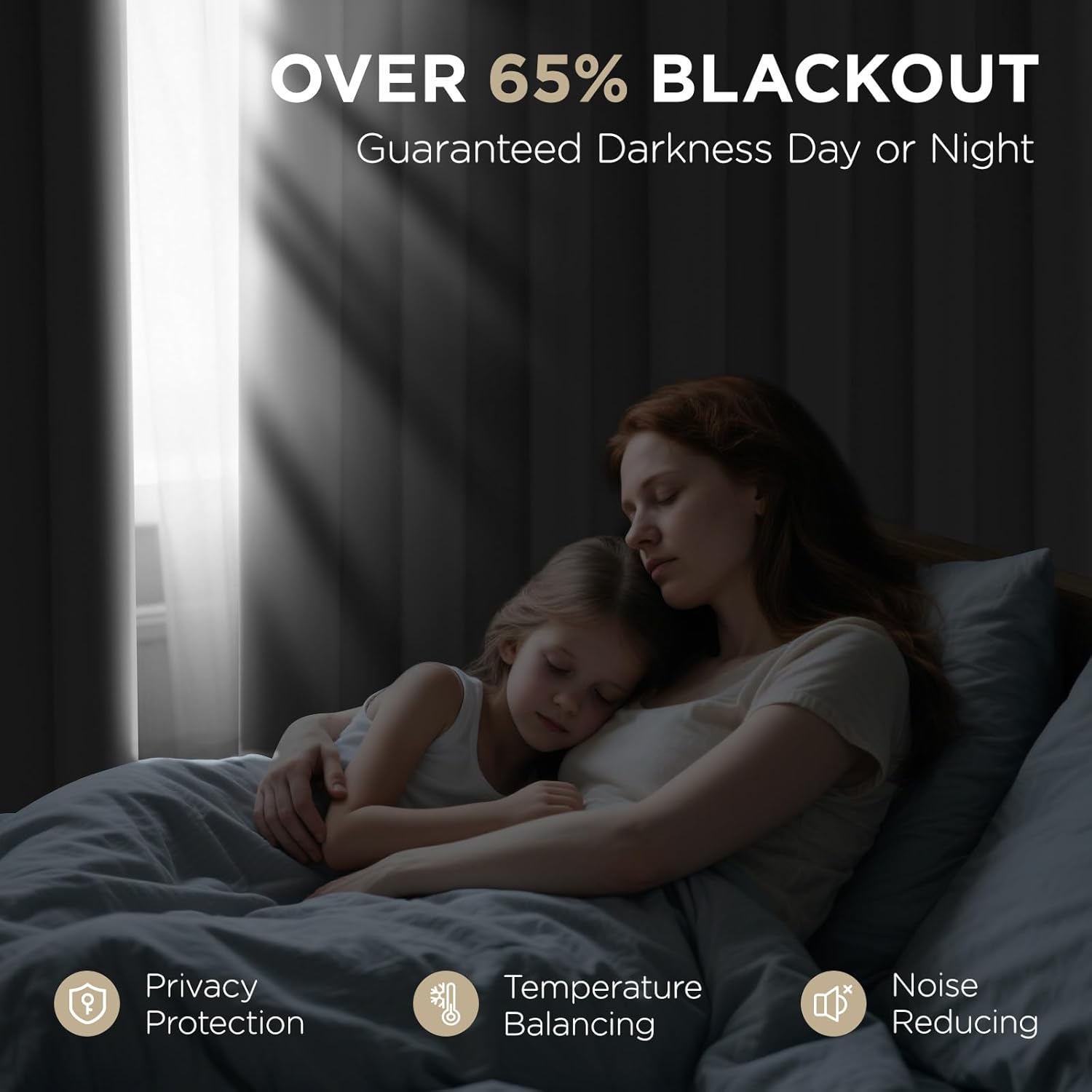 - Superior Blackout & Energy Savings: Black out curtains feature triple-weave technology for professional-grade light blocking. Dark colors curtains block 85%-99% of sunlight; light colors curtains block 65%-80%. Creates ideal darkness for sleep or naps. Thermal insulation helps regulate room temperature, reducing energy costs year-round.