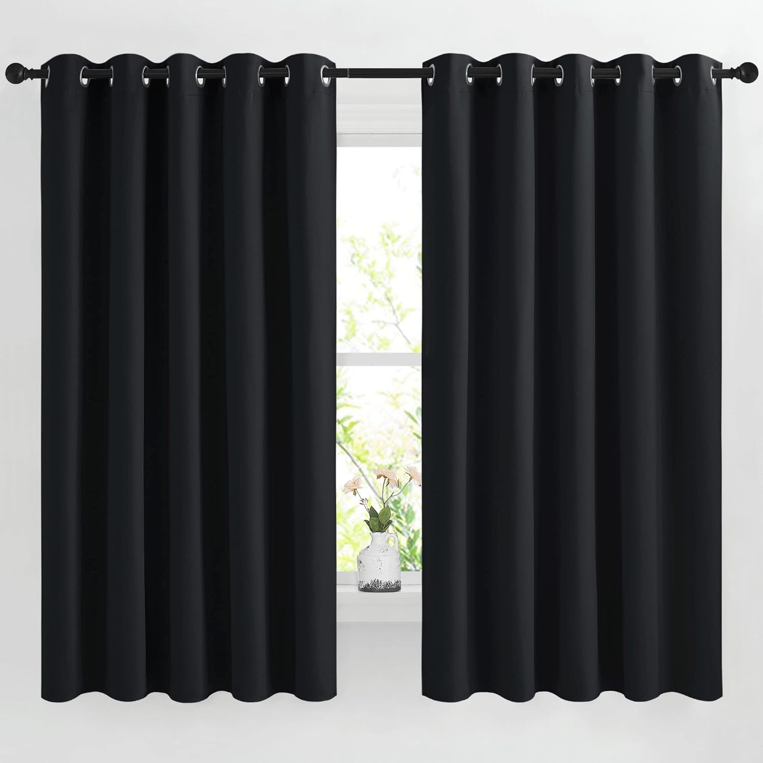 NICETOWN Blackout Curtain Panels 66 inches - Light Reducing Thermal Insulated Solid Grommet Blackout Curtains/Panels/Drapes for Living Room (Set of 2, 66 inches by 66 Inch, Black)